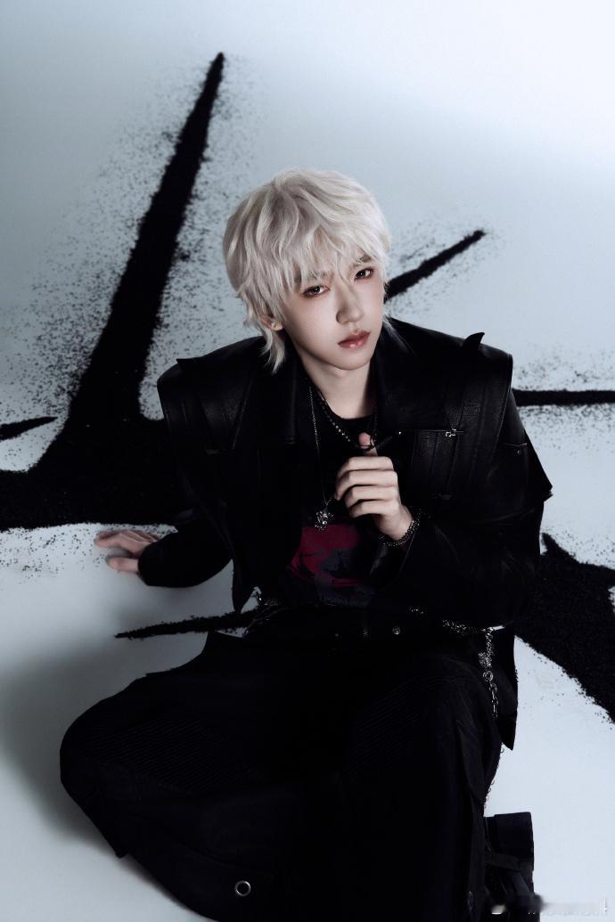 贺峻霖白发黑衣look、贺峻霖白发加冠概念照贺峻霖的白发加冠概念照太绝了,一袭黑衣衬得白发愈发惊艳,突破边界的少年气太绝!