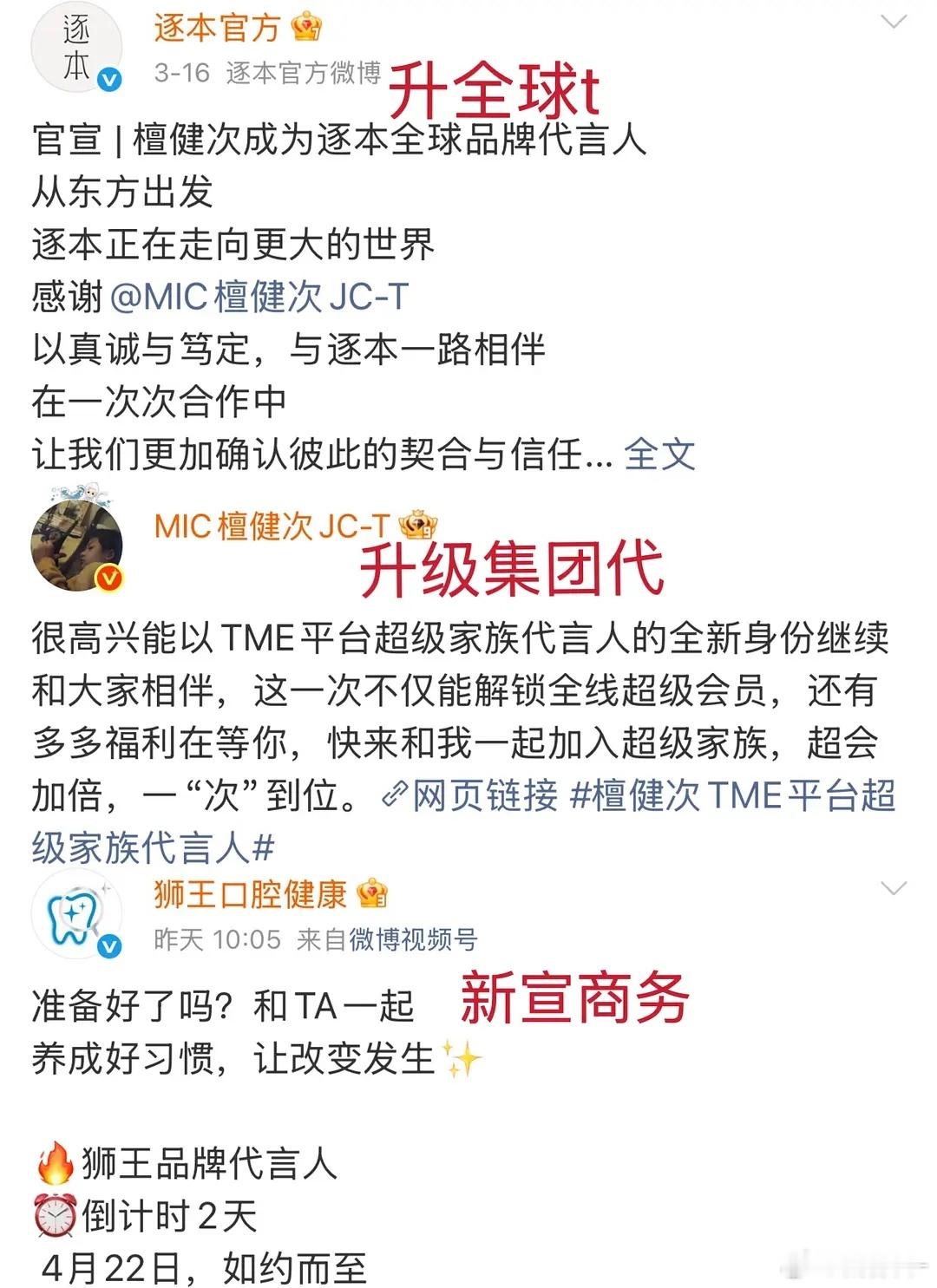 截止4月,檀健次已经完成11个商务长代续签,升级商务2个,新宣1个,全部都是最高title,国民,奢牌品类大满贯