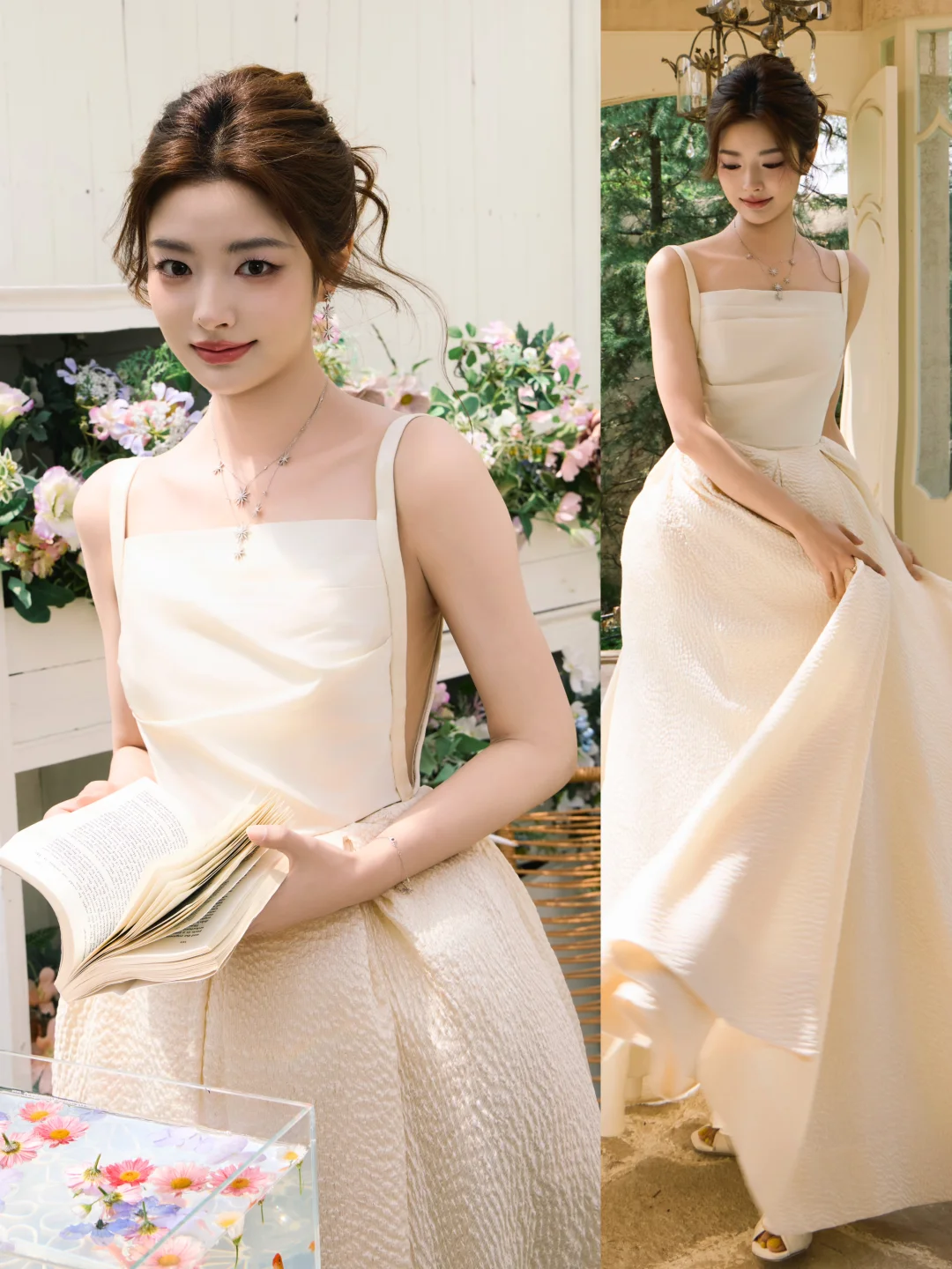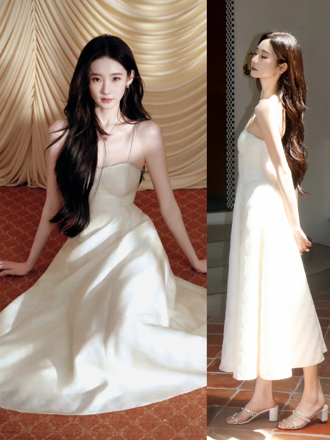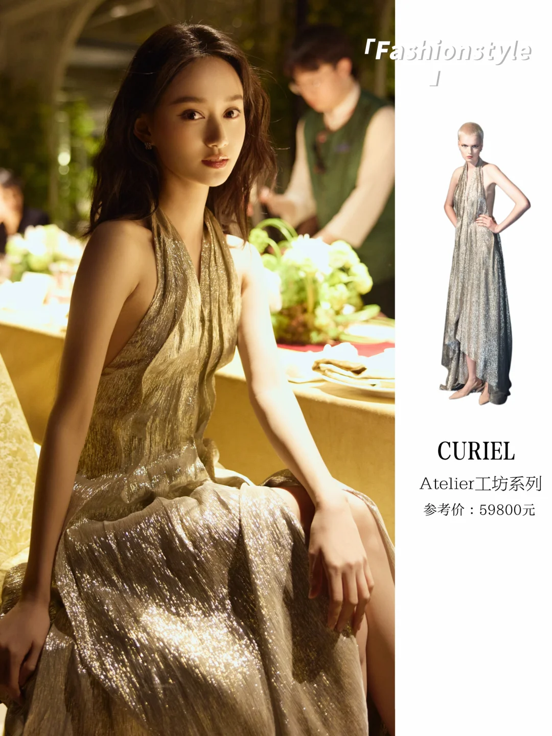 夏梦一袭挂脖露背连衣裙,这气质很难想象是个00后的妹子,高贵典雅,浓颜系真的绝