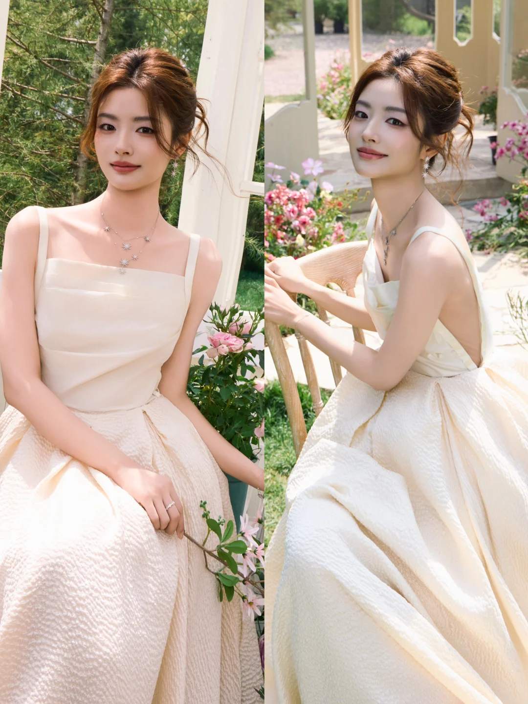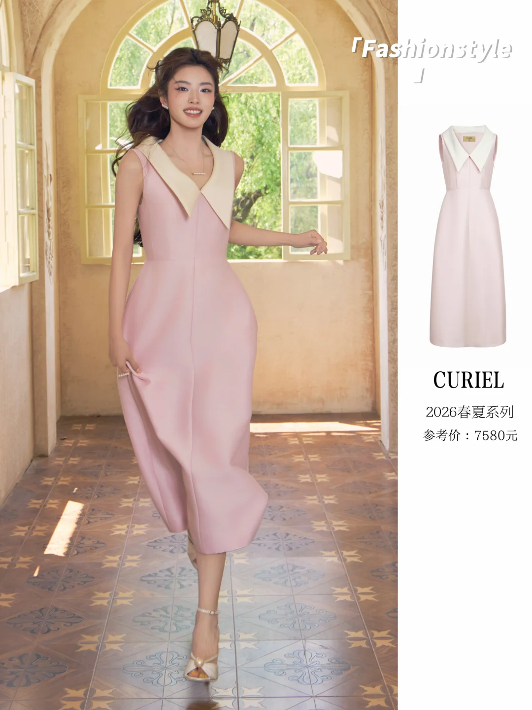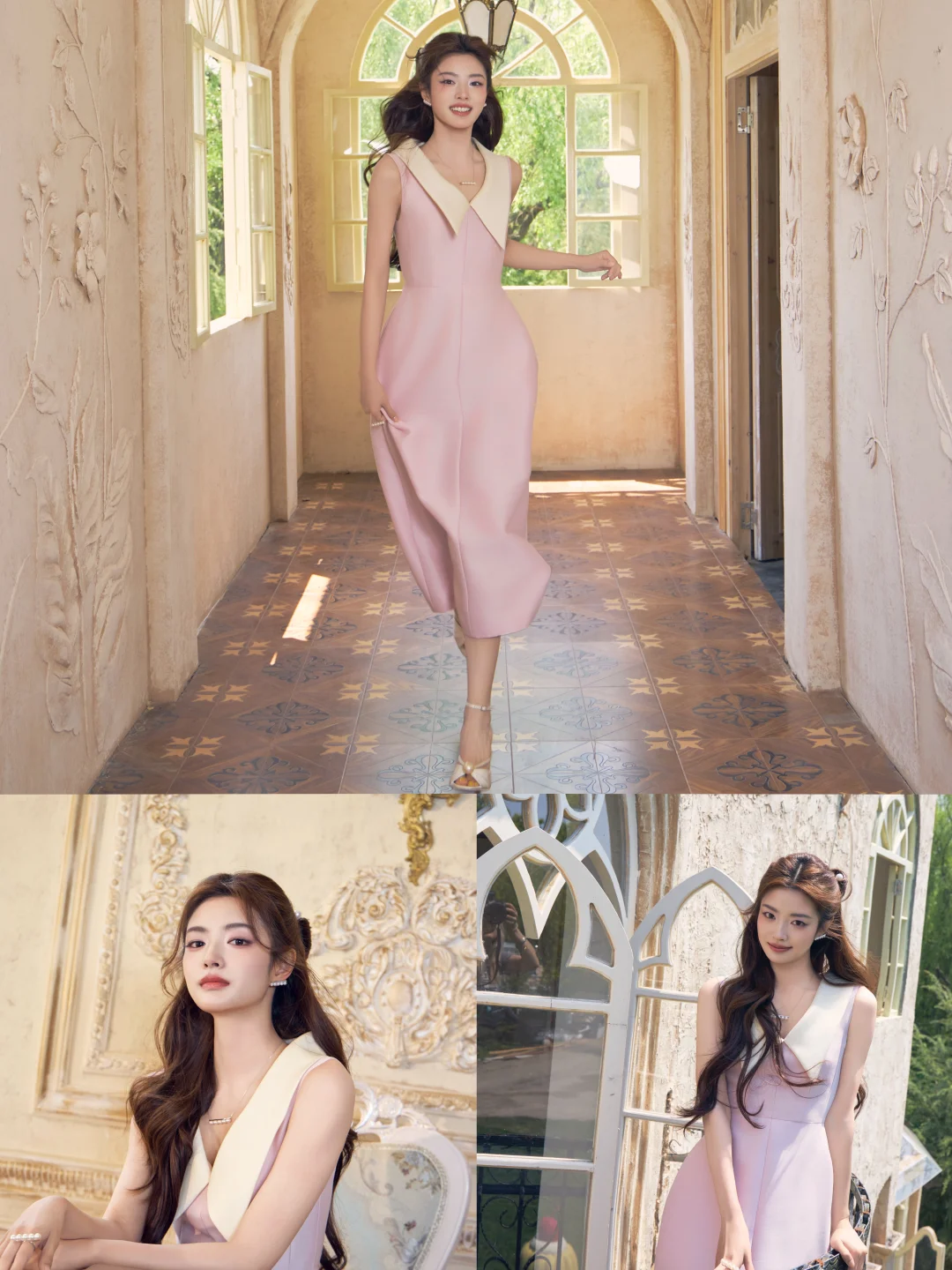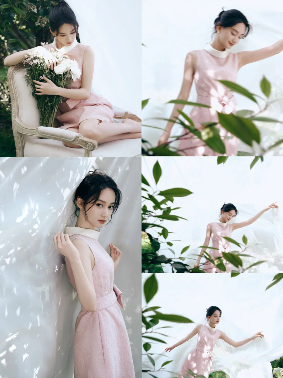 徐若晗一袭粉裙,像一朵明艳的春日桃花