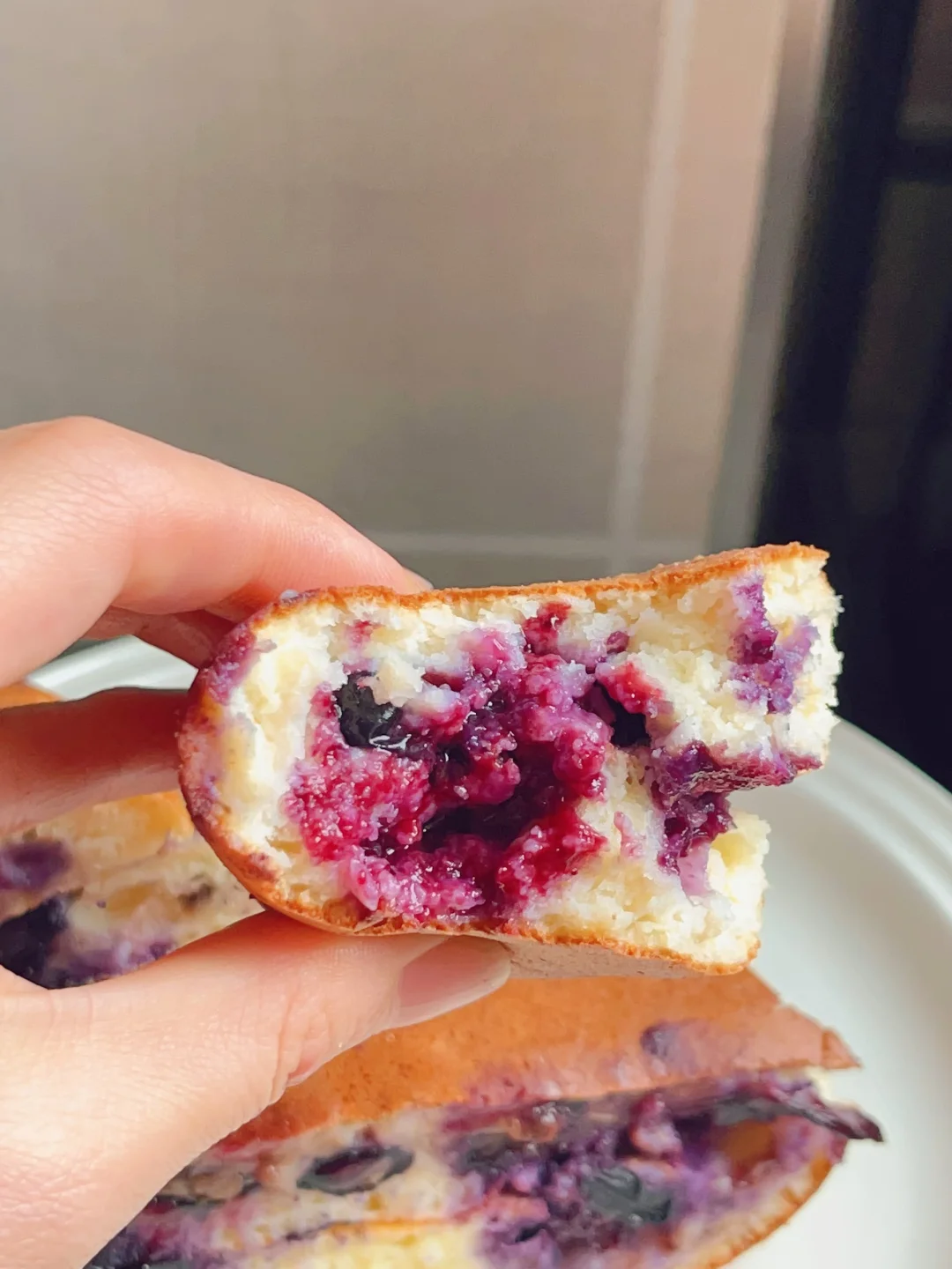 妈呀、这个蓝莓香蕉厚松饼高低都得试试,无糖无油松软香甜还爆汁,谁吃谁喜欢