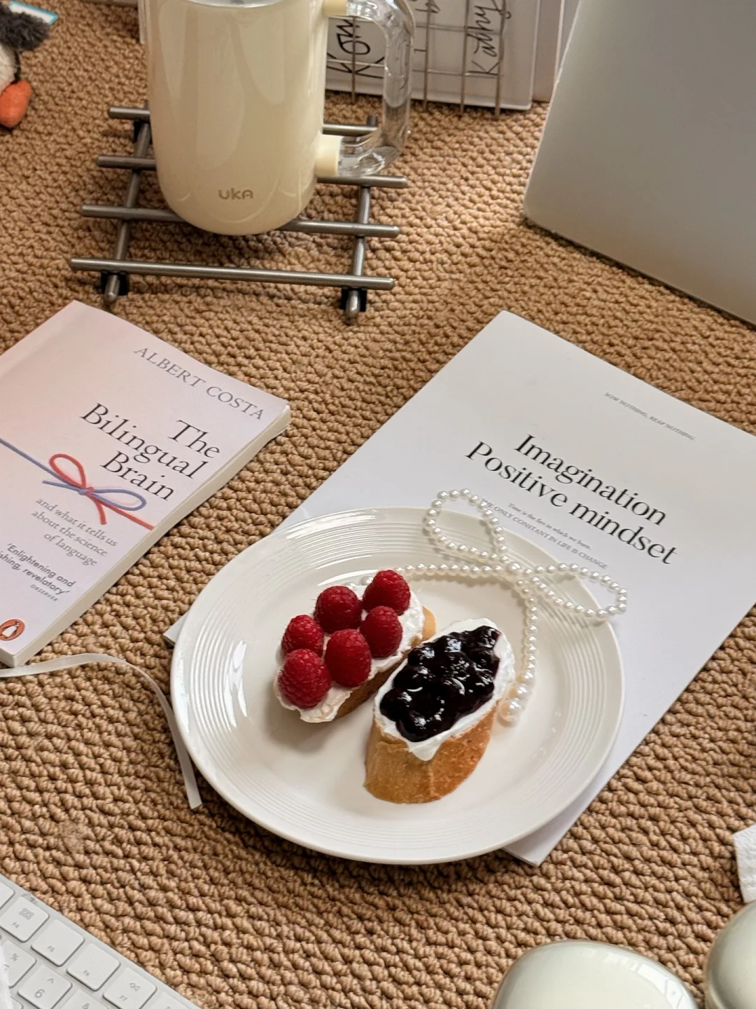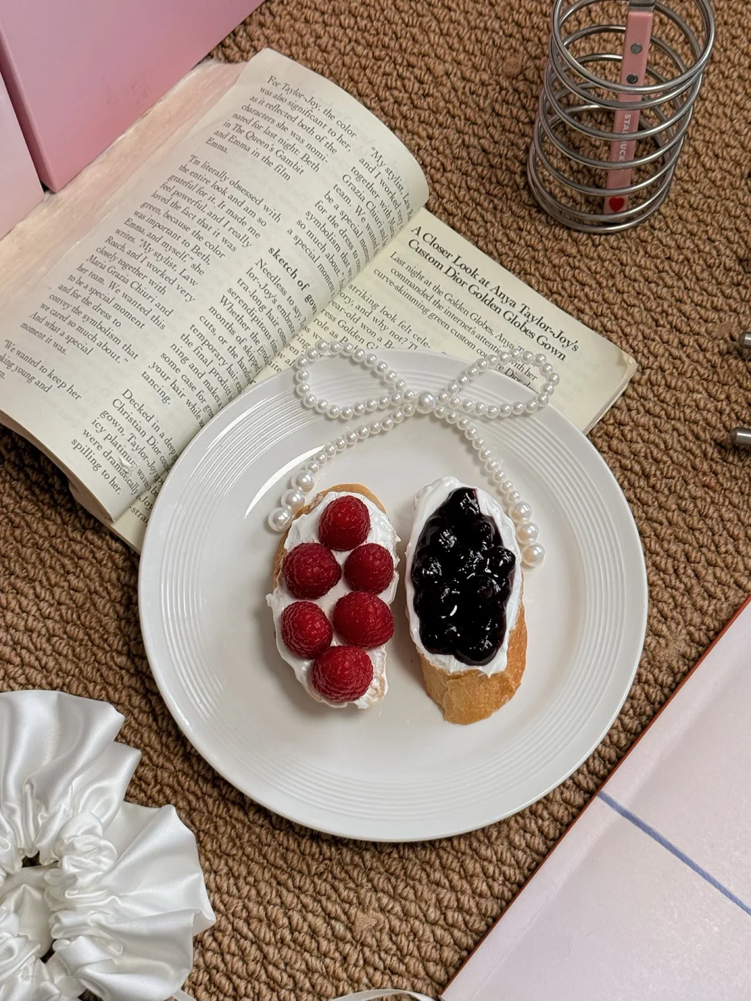 一半希腊酸奶蔓越莓,一半蓝莓果酱。