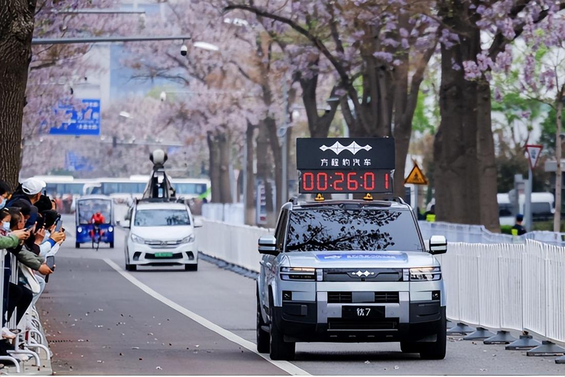 这次赛事的官方护航车辆,就是比亚迪旗下的方程豹汽车,全程陪着这些“钢铁运动员”跑完全程,靠的就是实打实的硬核实力。要知道,这21公里的赛道可不简单,有城市主干道、公园小路,还有复杂的坡道和弯道,对机器人和护航车辆都是大考验。