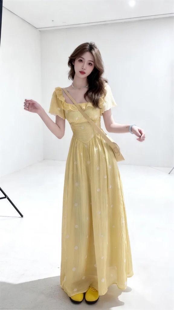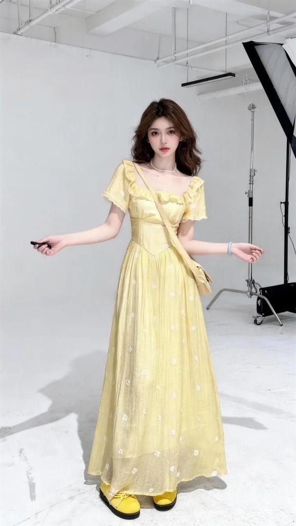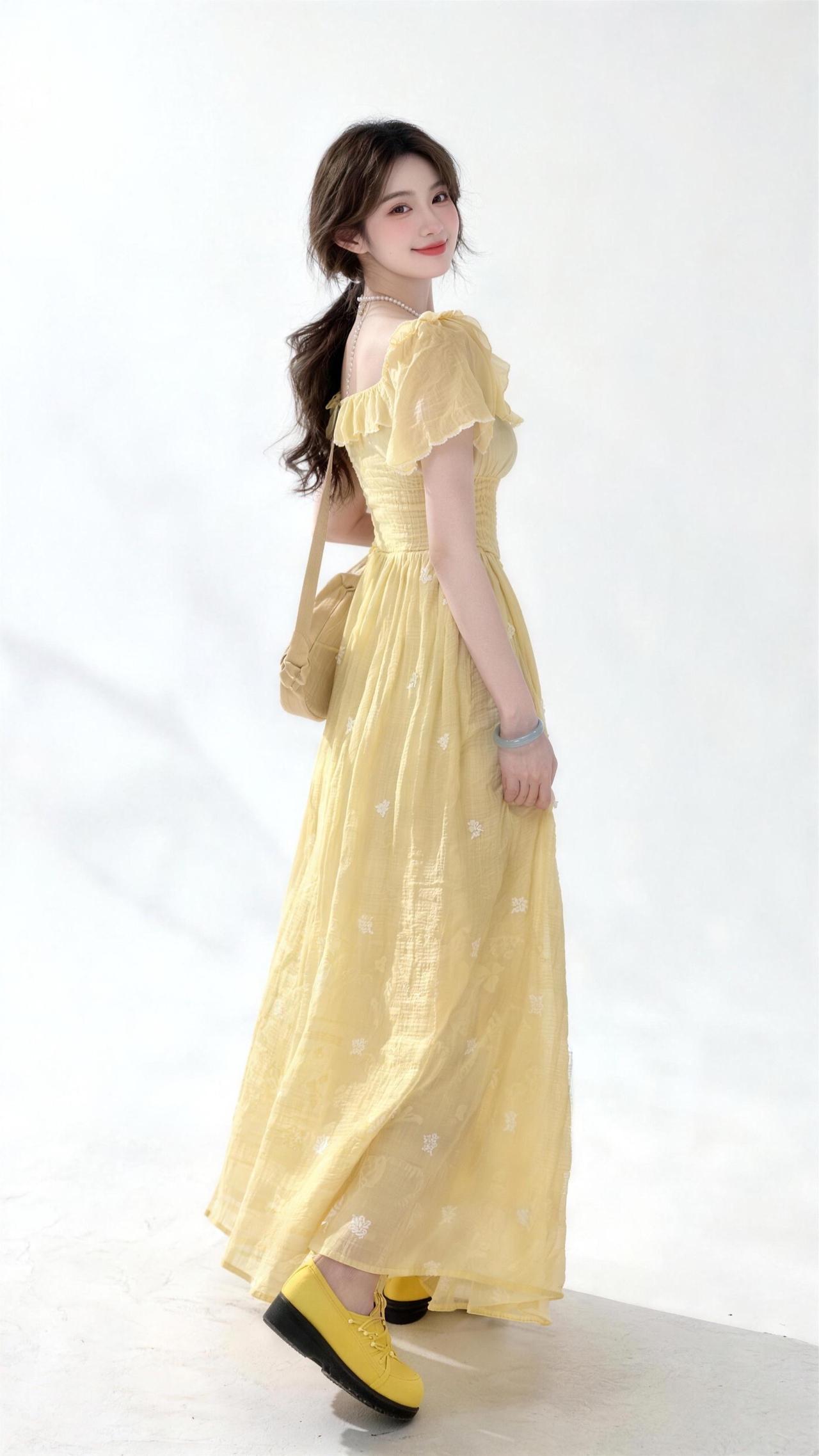 夏日浅黄色连衣裙 仙女裙造型分享 清新黄色连衣裙 夏季黄色连衣裙 鹅黄独特漂亮裙
