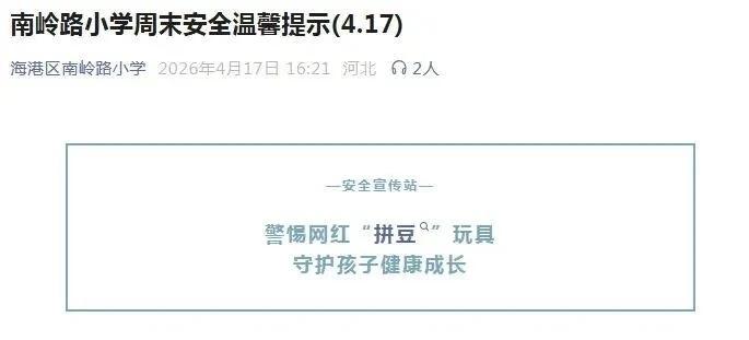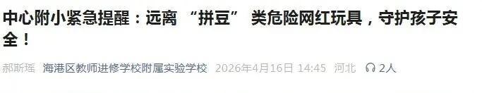 连日来,秦皇岛市多所中小学校接连发布紧急提醒,远离“拼豆”类危险网红玩具,守护孩子安全!