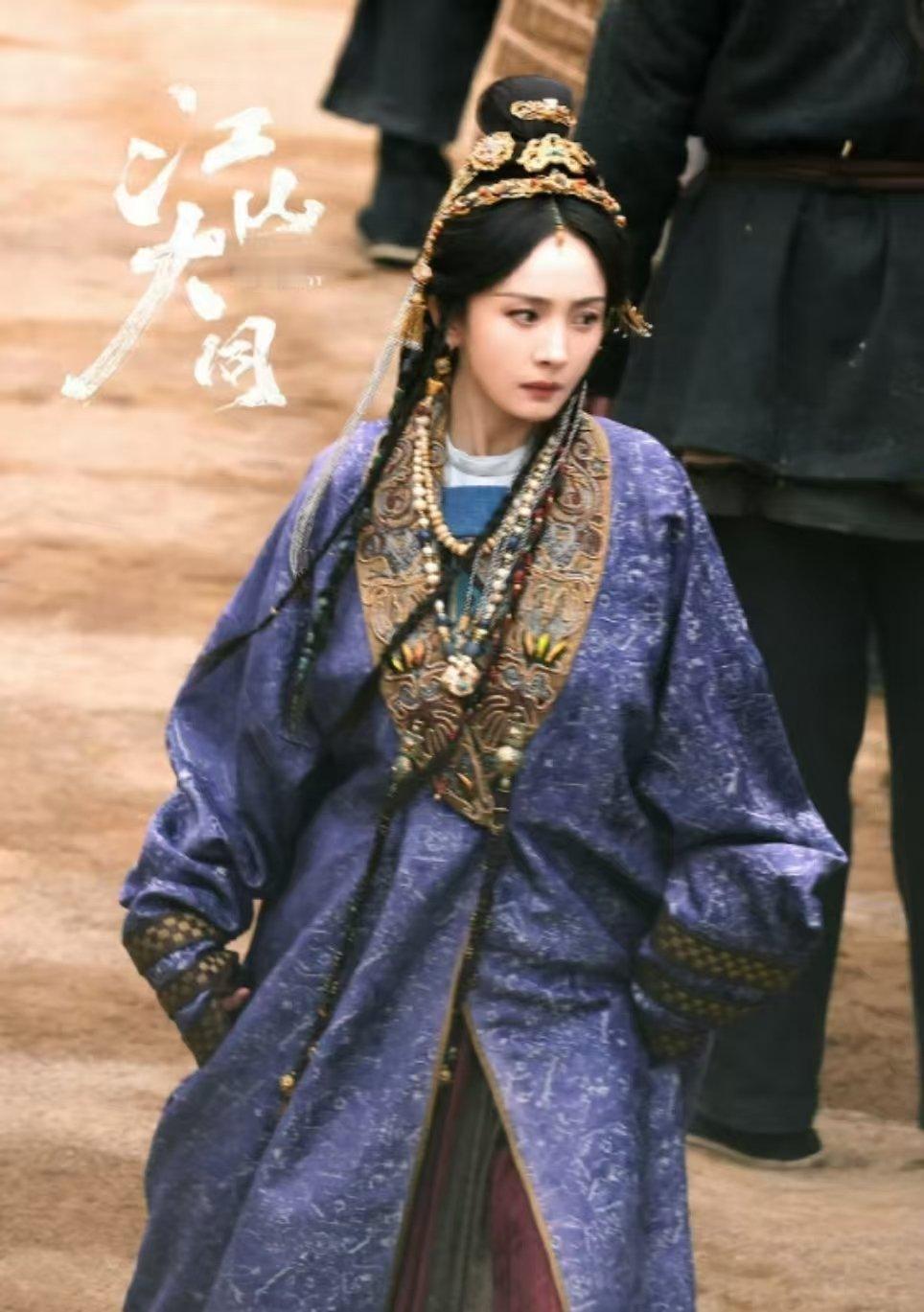杨幂紫色胡服杨幂冯湮儿金冠造型杨幂冯湮儿金冠造型
