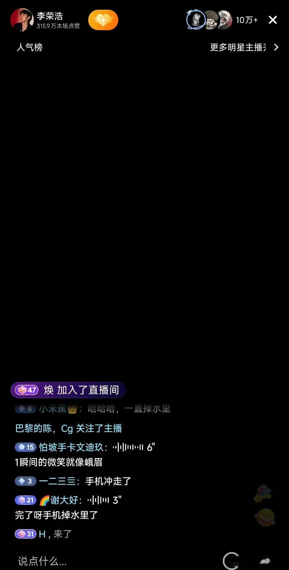 李荣浩是懂怎么直播的就这个快快乐乐钓鱼瞬间黑屏的画面,李老师该钓手机了