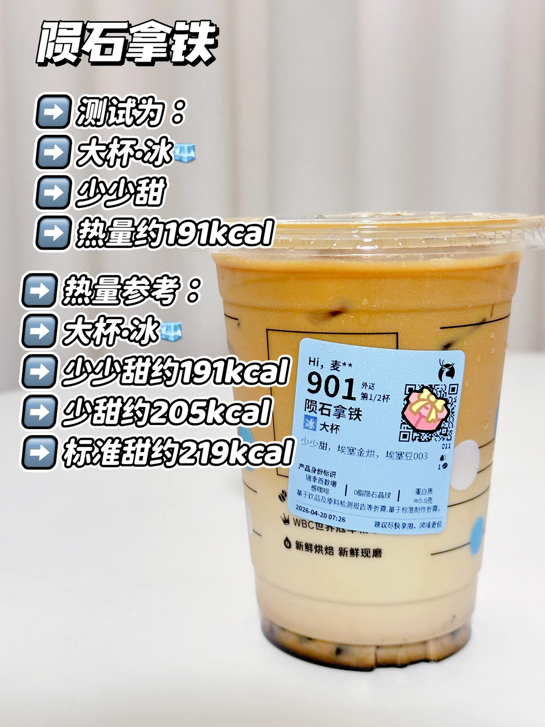 测试为:大杯·冰🧊少少甜 约191kcal