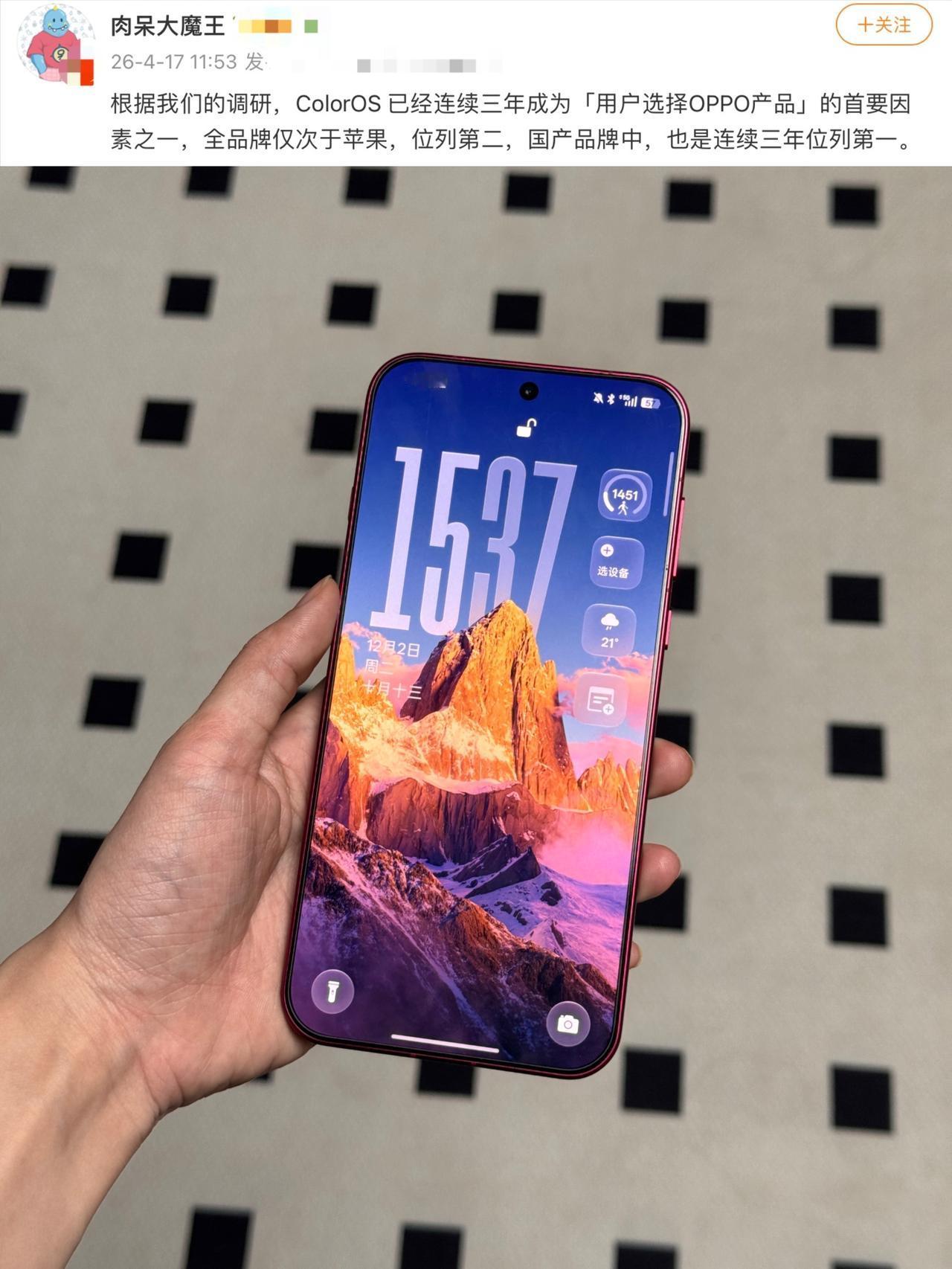 ColorOS已经连续三年成为“用户选择OPPO产品”的首要因素之一
