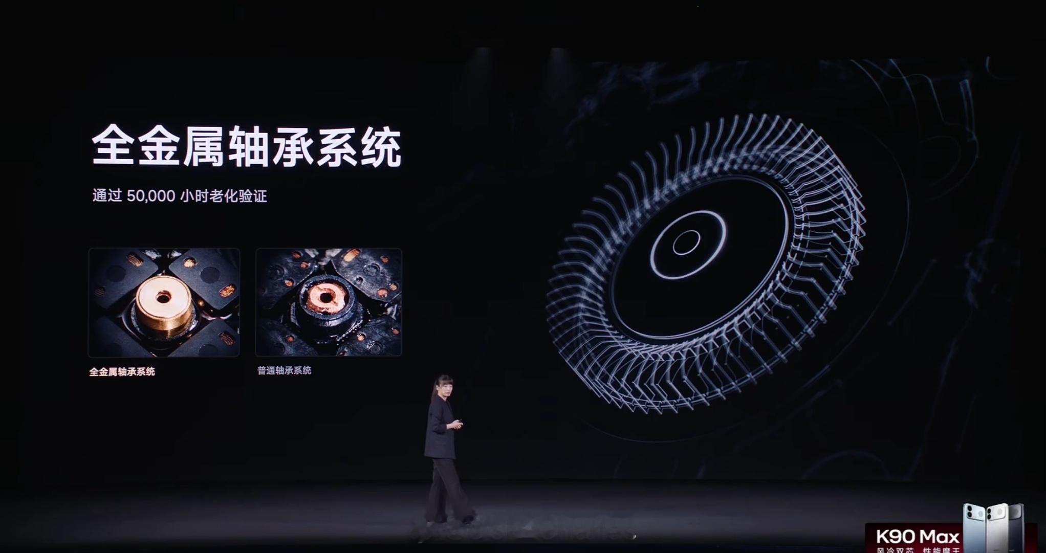 行业大部分风扇用的都是塑料轴承,K90 Max是金属的,强度更高,更不容易漏油红