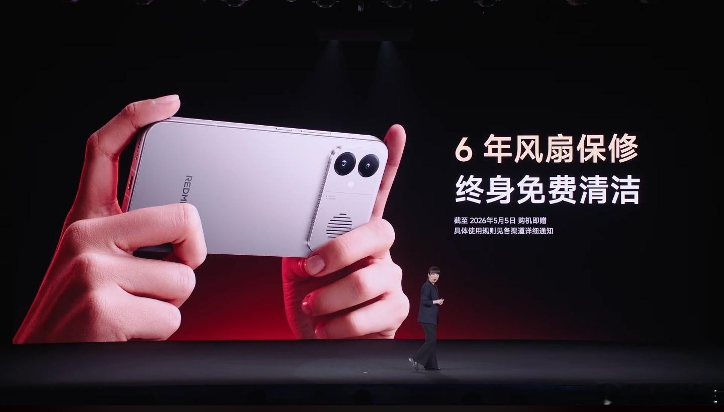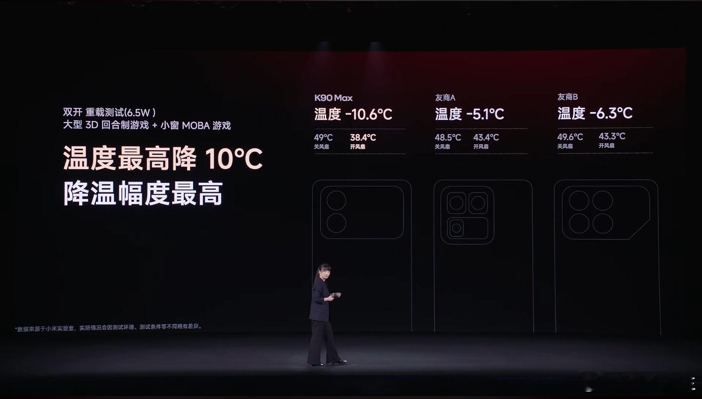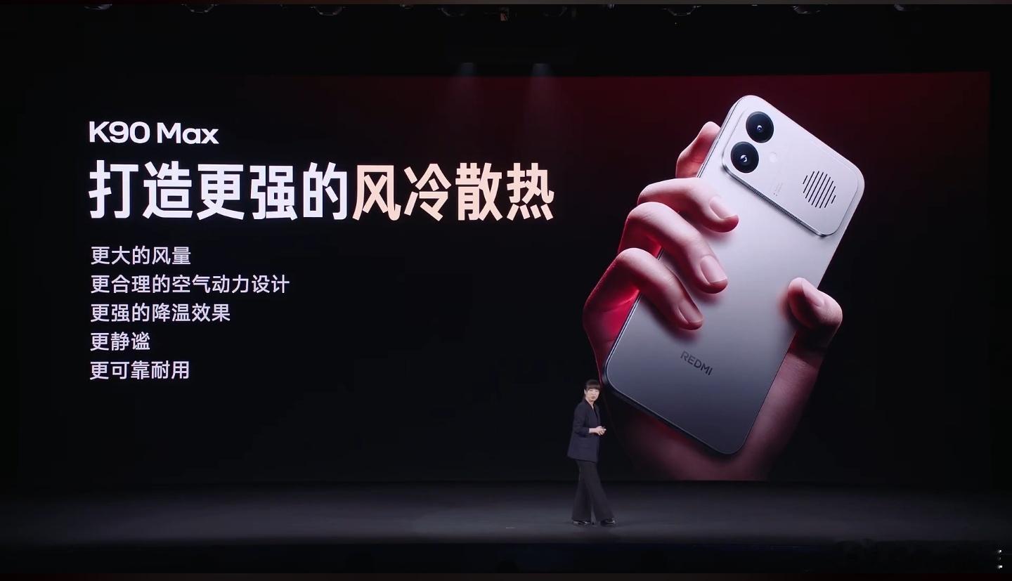 红米K90Max发布会搭载超大尺寸风扇,单体最大风量,风量利用率78.6%,出门