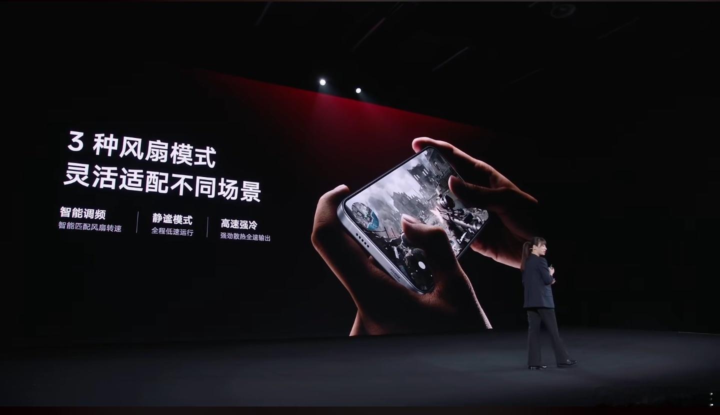 红米K90Max发布会搭载超大尺寸风扇,单体最大风量,风量利用率78.6%,出门口二次降温。