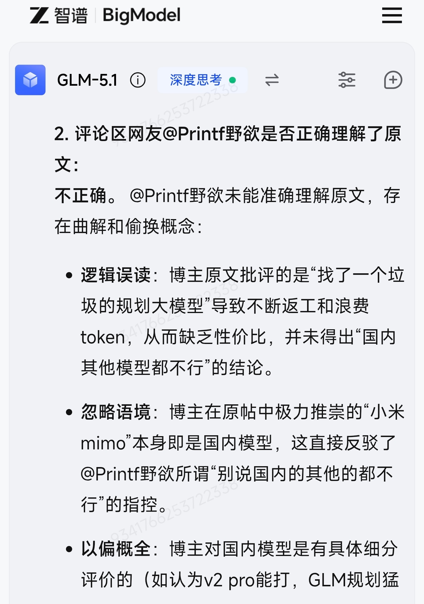 我评价它上下文容量低,注意力偏移强,GLM深表认同