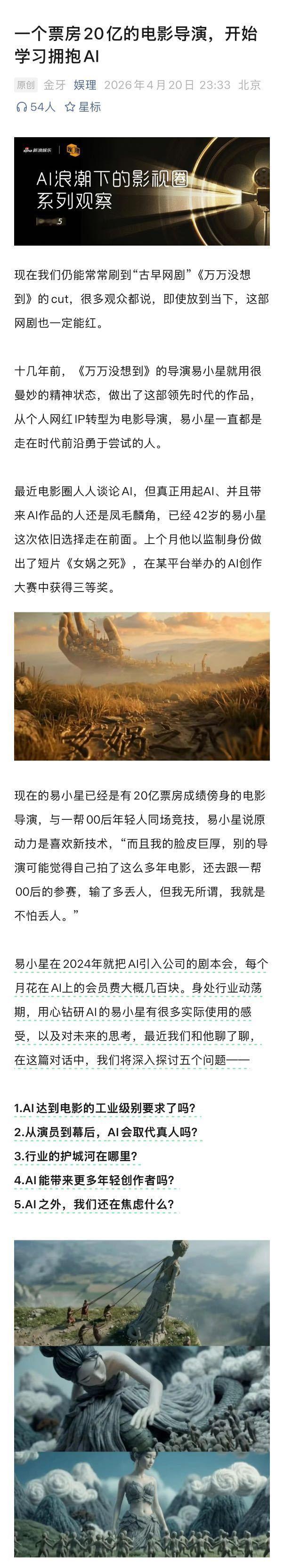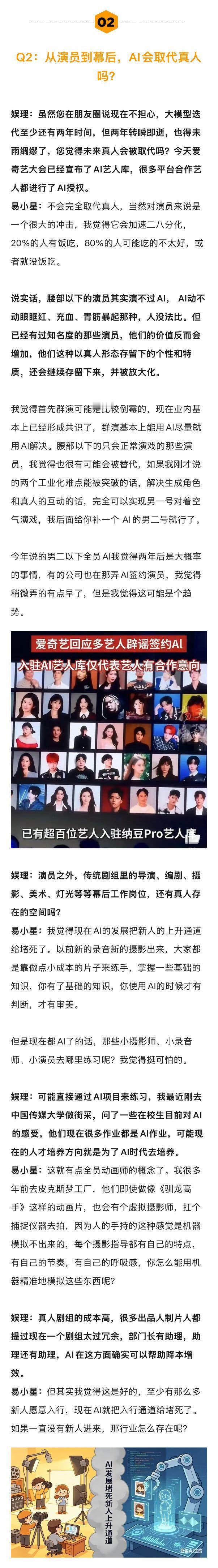 易小星说腰部以下演员演不过AI 易小星说AI堵死了新人的上升通道 AI会带来的