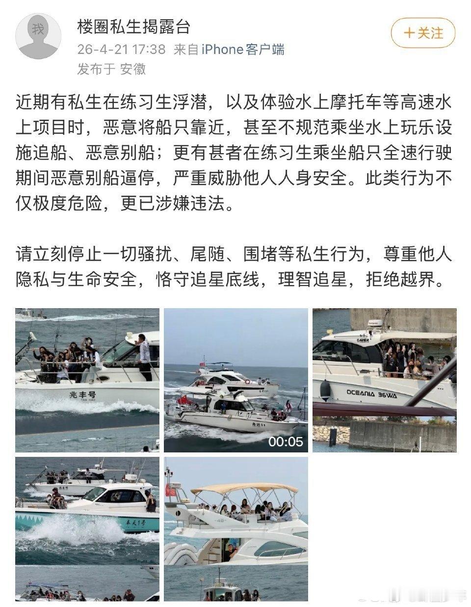 TF四代出海后面跟了十几艘船TF四代船后面跟了十几艘船 TF四代今日出海开展拍摄工作,随行船只数量较多,海上密集跟随场景引发外界讨论