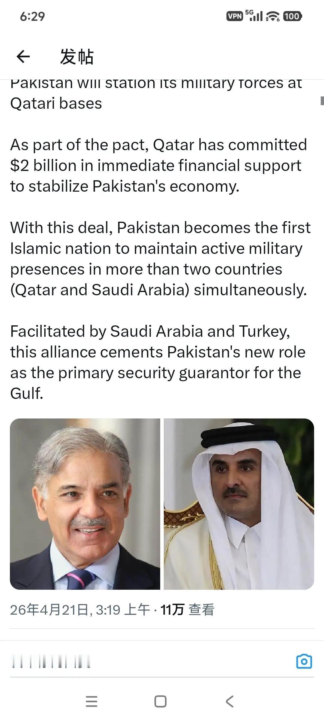 巴基斯坦与卡塔尔签防务协议,创下伊斯兰国家军事部署新纪录! 今年4月21日巴基