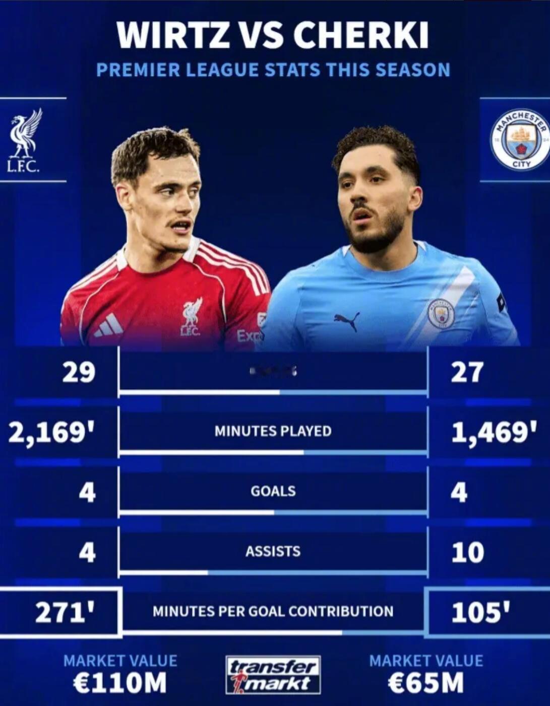对比维尔茨与谢尔基本赛季数据,显然谢尔基适应英超的能力更胜一筹。
