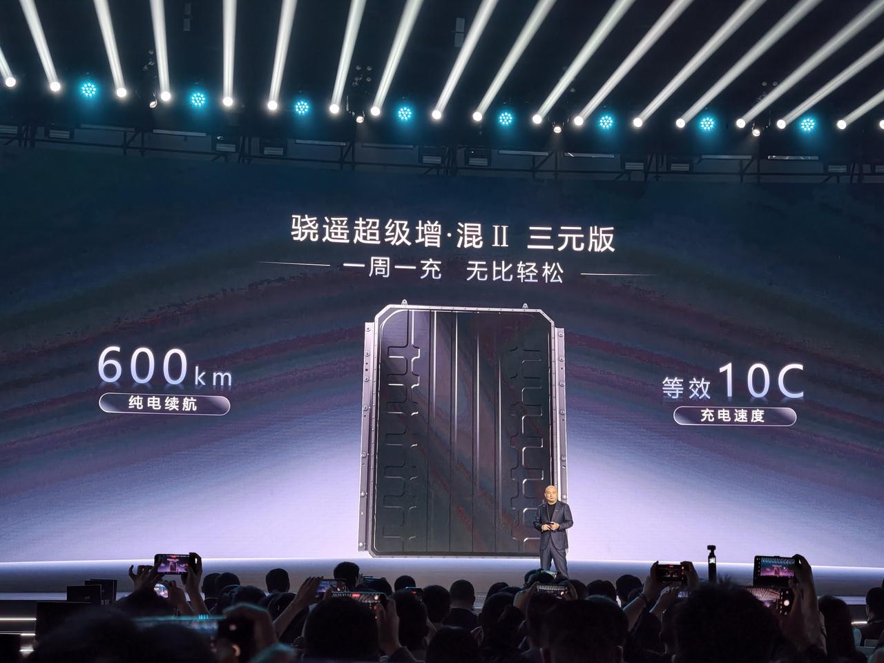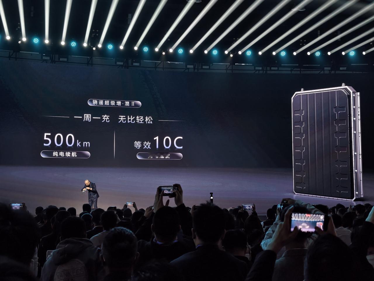 麒麟凝聚态电池发布,超高密度电池,行政级轿车续航能达到1500公里,电池依然能控制在650kg;还有第二代骁遥电池10C500公里续航,增混三元版600公里。