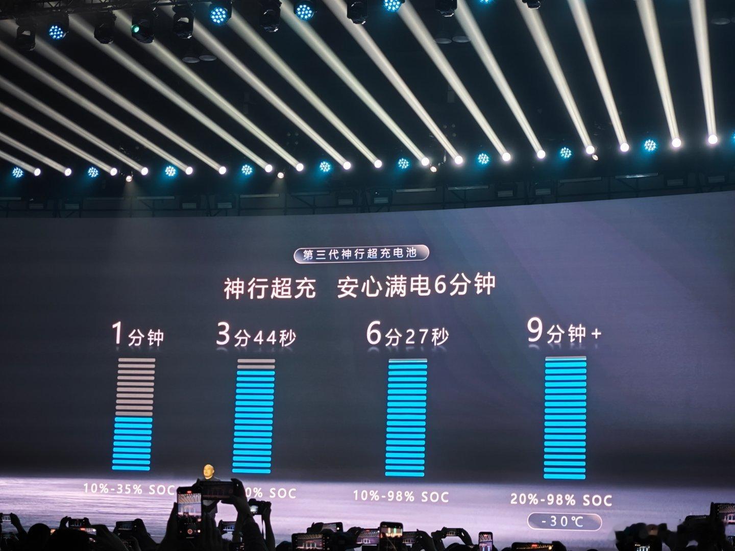今晚的宁德时代超级科技日,电池超充依然是重点,“充电比加油快”如今已不成问题,第三代神行超充电池可以实现等效10C、峰值15C的超充能力,10%至98%仅需6分27秒。
