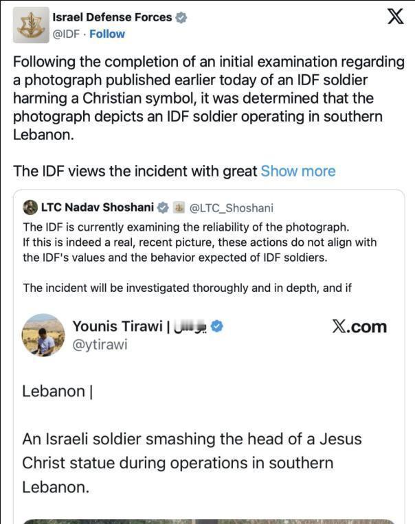 4月19日,一张在外网疯传的照片,直接把一向强硬的以色列高层逼到了舆论的悬崖边。一名穿着以军制服的士兵,在黎巴嫩南部抡起一把大锤,狠狠砸向一尊倒地的耶稣大理石雕像。仅仅48小时,这张浏览量突破500万的照片,竟让以色列内阁上演了一出史无前例的“光速滑跪”大戏。