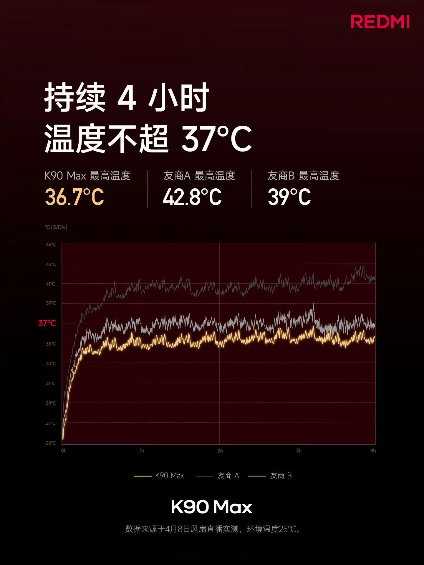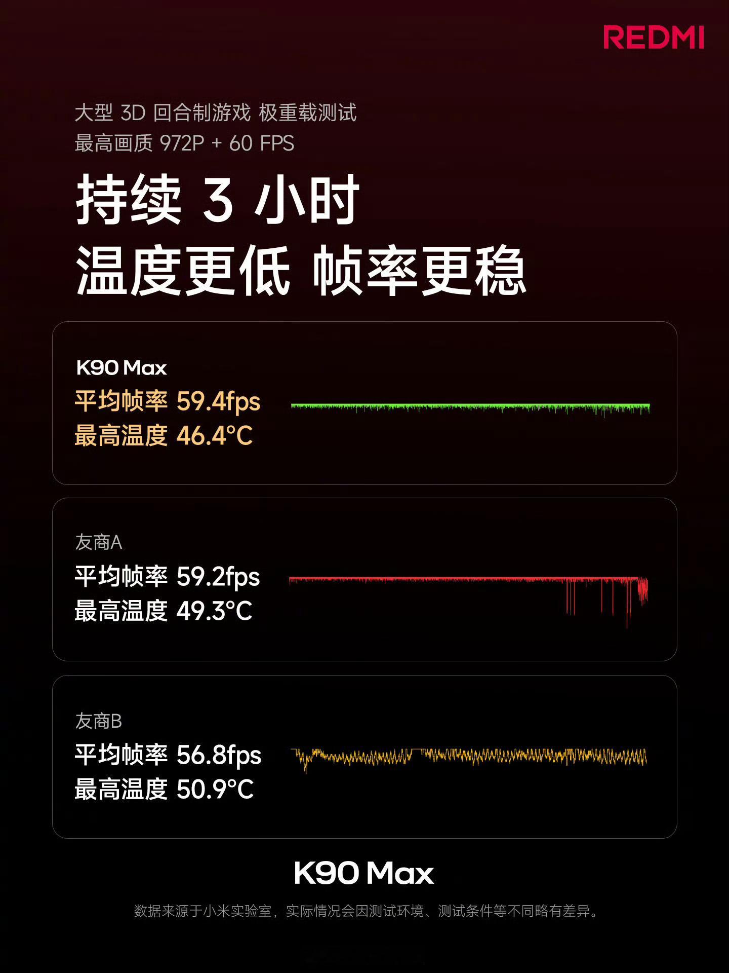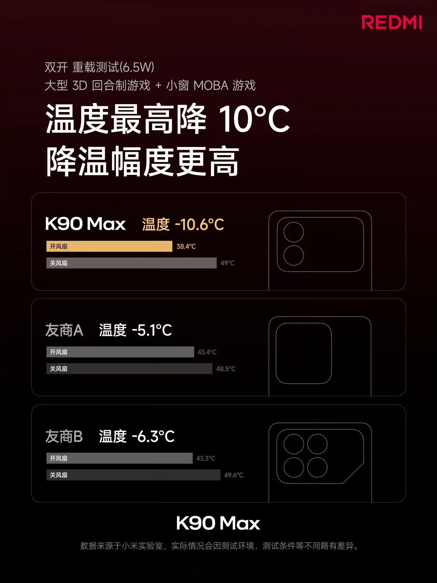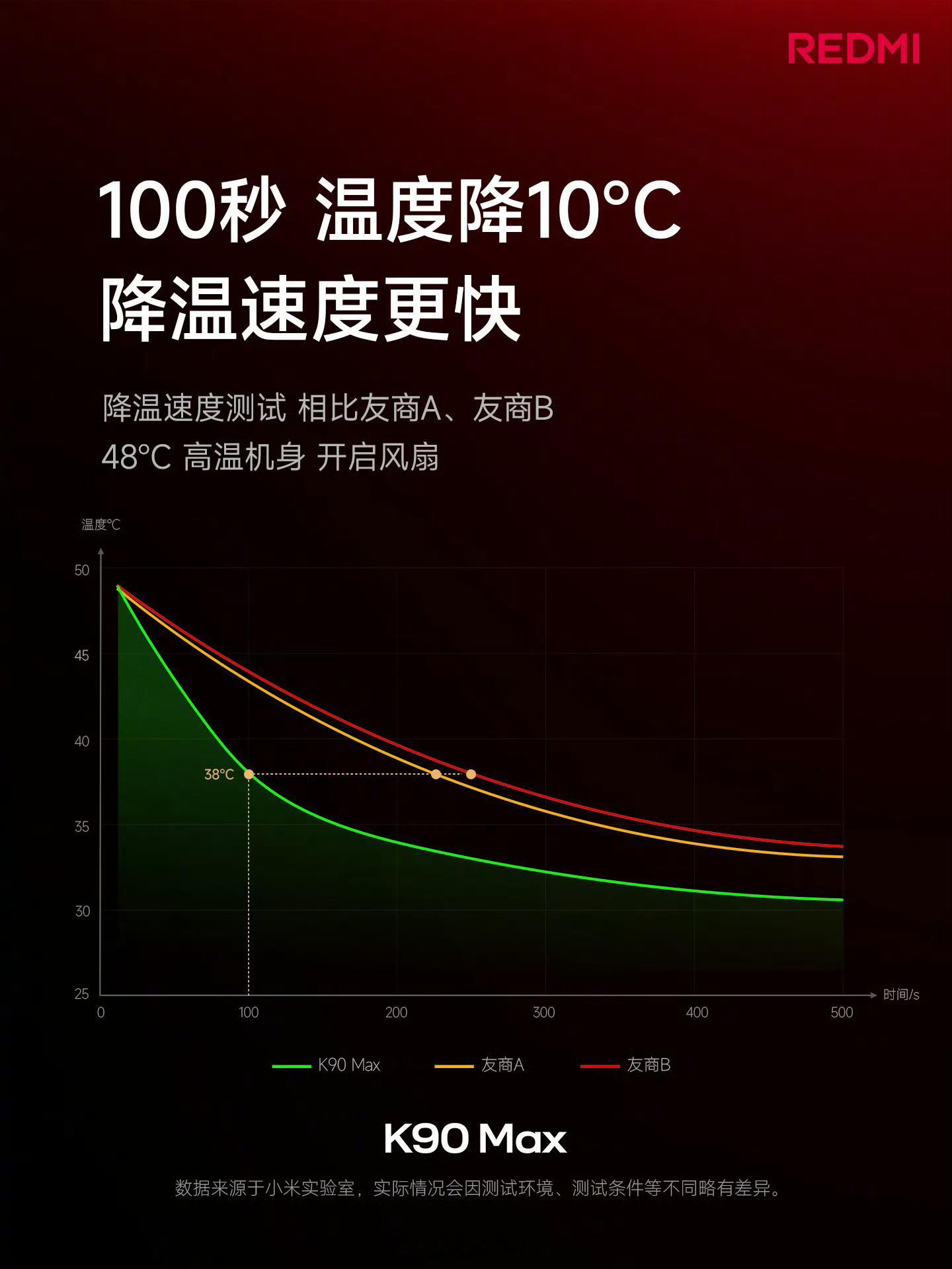 红米K90Max发布会红米K90 Max 风冷主动散热实测数据来了,最高档位风速,100秒直降10°C知名 MOBA 游戏连玩 4 小时,不超 37 °C大型 3D 回合制游戏,高画质高帧率持续满帧高速强冷档,背部收音低至 32dB,更支持防尘防水5月5日前购机,送 6 年风扇保修 + 终身免费清洁养护