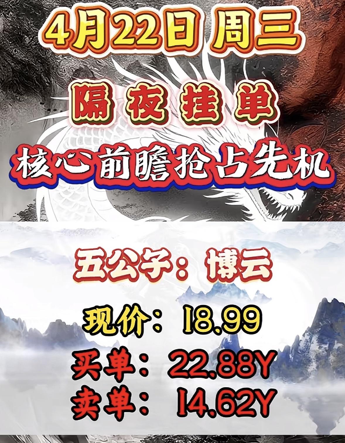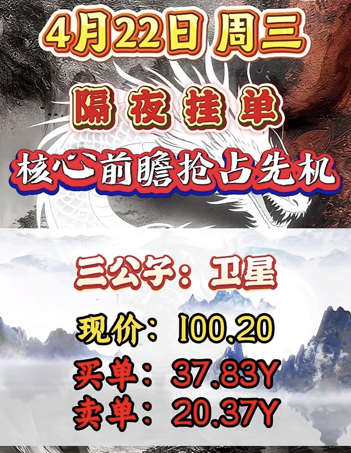 4月22日周三暗盘隔夜挂单排行榜出炉