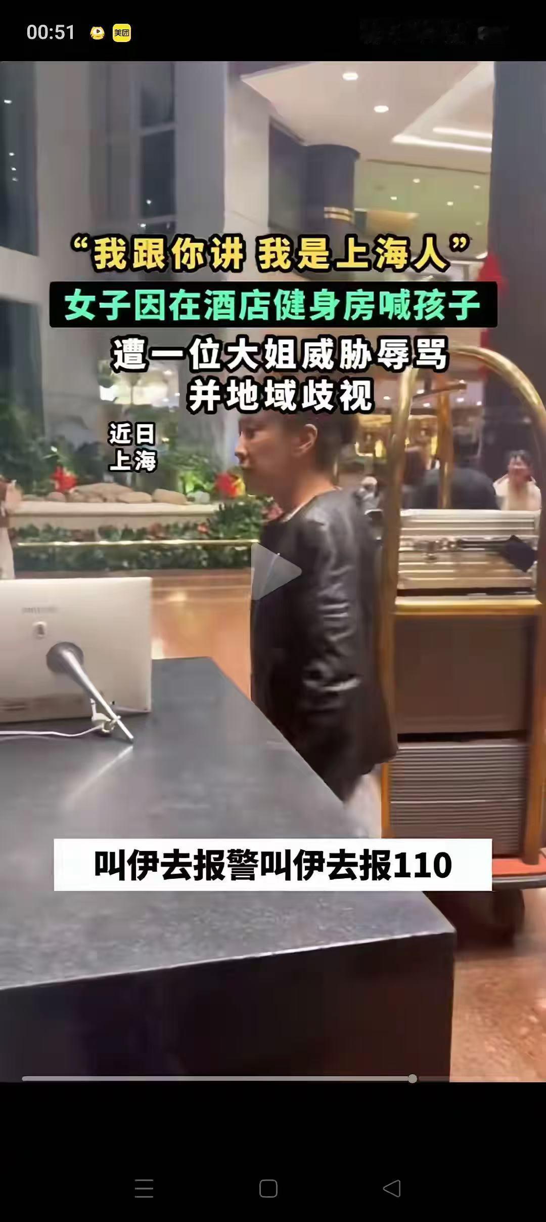 这事说出来真的让人火大,我刷到视频的时候,隔着屏幕都替那个妈妈觉得委屈。人家只是在健身房里喊了下孩子,声音估计也没大到吵到谁,结果就被这位自称“上海人”的大妈劈头盖脸一顿骂,还说什么“外地人乱叫”,甚至放狠话让她去报警,那嚣张的样子,不知道的还以为她是酒店的老板呢。