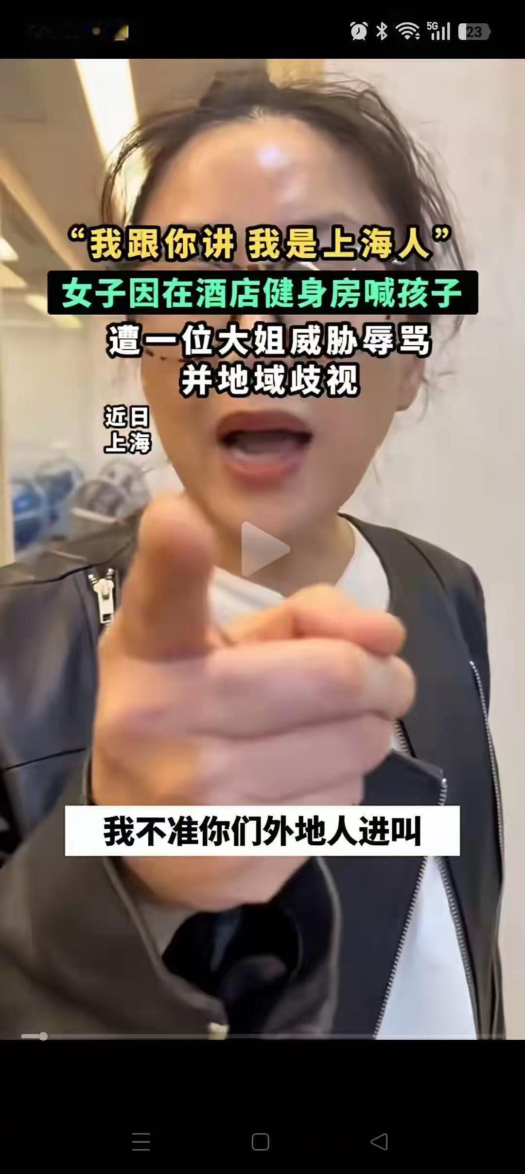 “太丟上海人的脸了”,上海,一外地游客在酒店健身房健身,喊了一下女儿的名字。不料一位大妈立马怼她:我跟你讲我是上海人,我不准你们外地人乱叫。