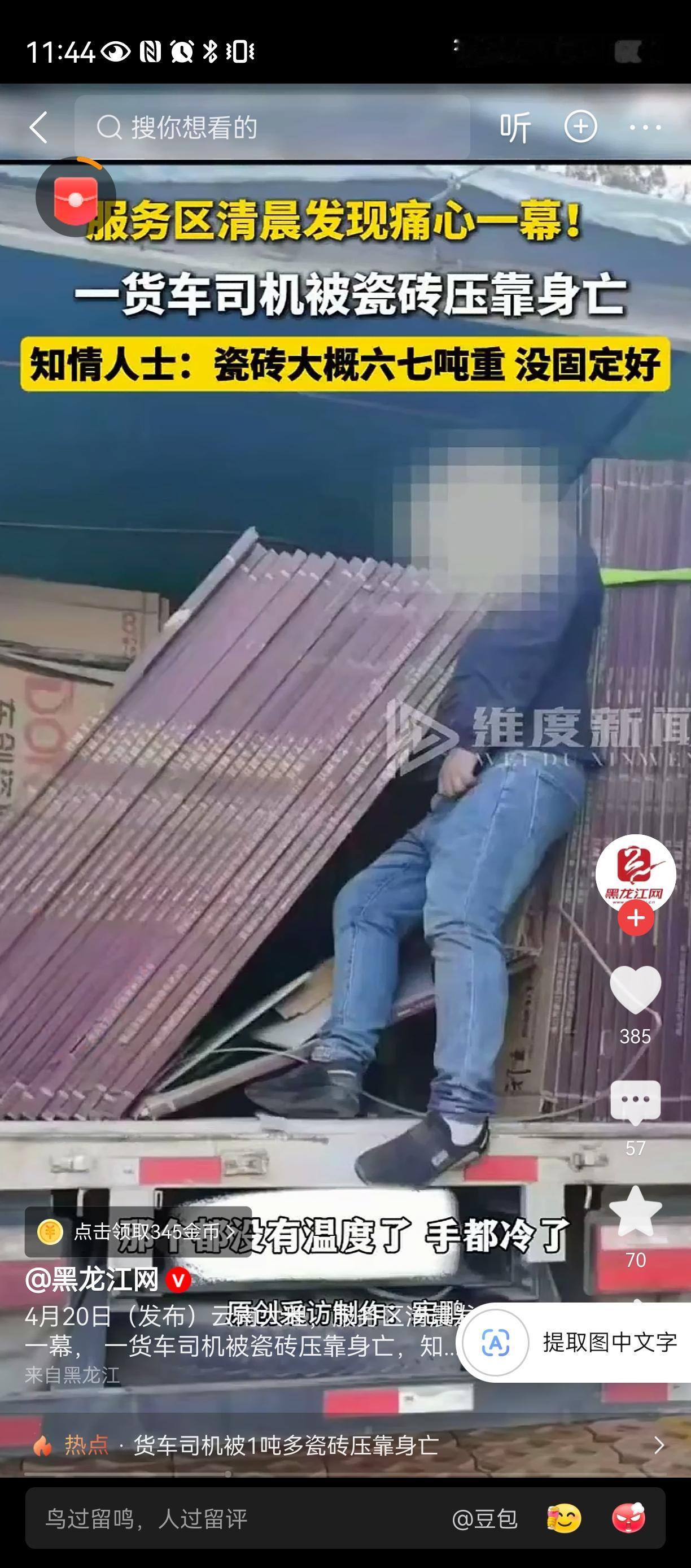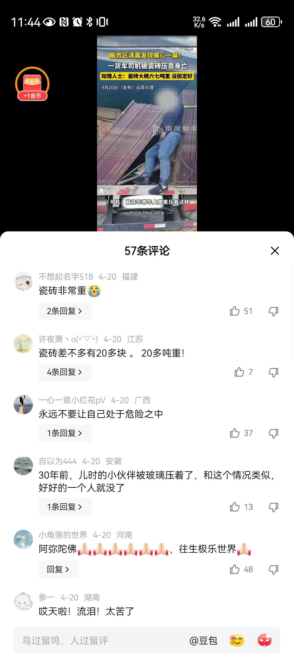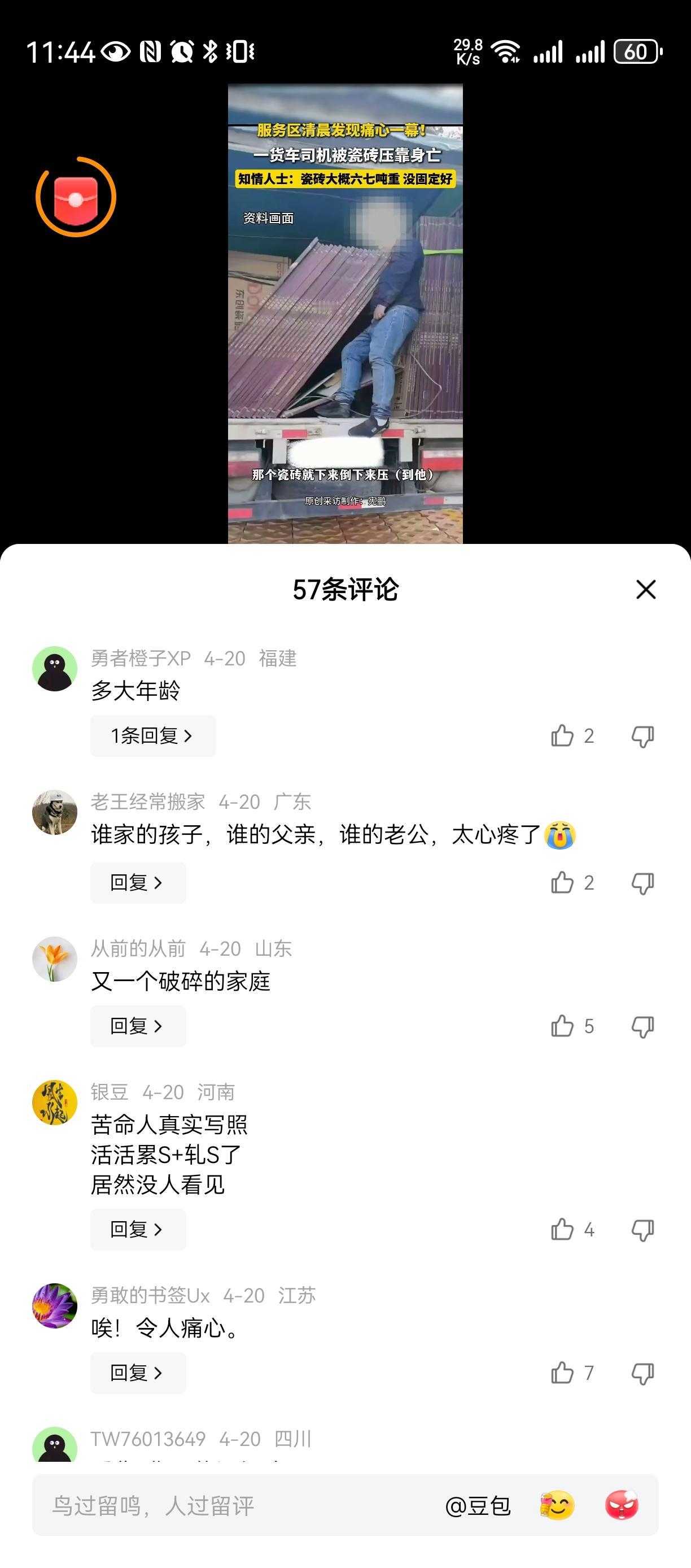 生活是多么不幸[祈祷][祈祷][祈祷] 不知道是谁的儿子,父亲,丈夫, 一个家庭的顶梁柱, 被瓷砖活活压死, 太生活是多么坚难 [祈祷][祈祷][祈祷] 如果不是为了碎银五两, 谁愿意去做这样的脏活危险活