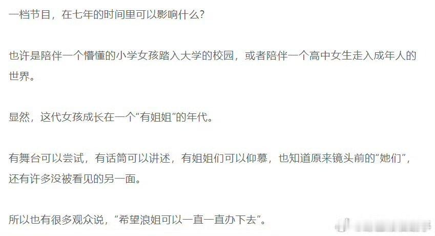 内娱不能没有浪姐希望浪姐可以一直一直办下去因为浪姐,大家聊起女性不再是年龄焦虑,