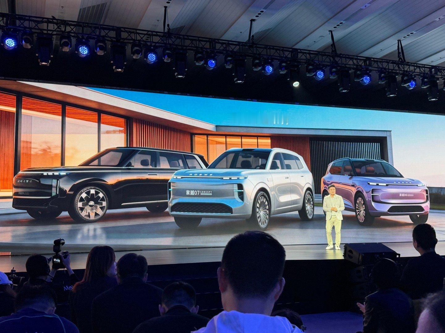 现场家越07、06、09三款概念车同台亮相,首款家越07由国际设计大师打造,“昂扬美学”设计气场十足,近5米车长搭配高车头与质感漆面,沉稳又有安全感。AI驱动的繁星灯带、星链大灯氛围感悉数配齐,隐藏式摄像头更是实用又美观!