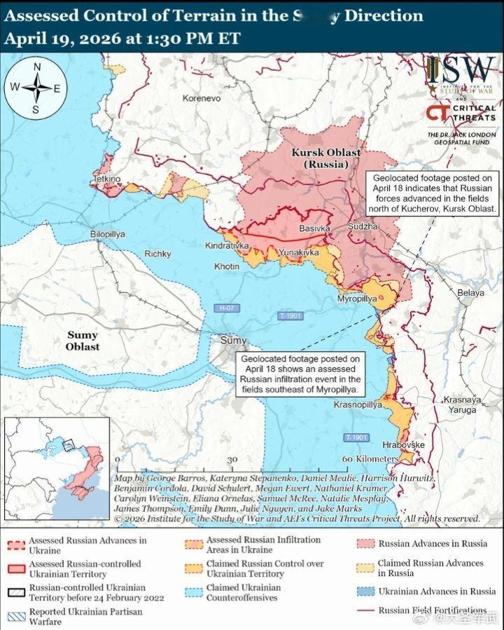 ISW未观察到这些攻势导致战术上显著进展的证据,且四次攻势中有三次似乎未越过目前评估的接触线。