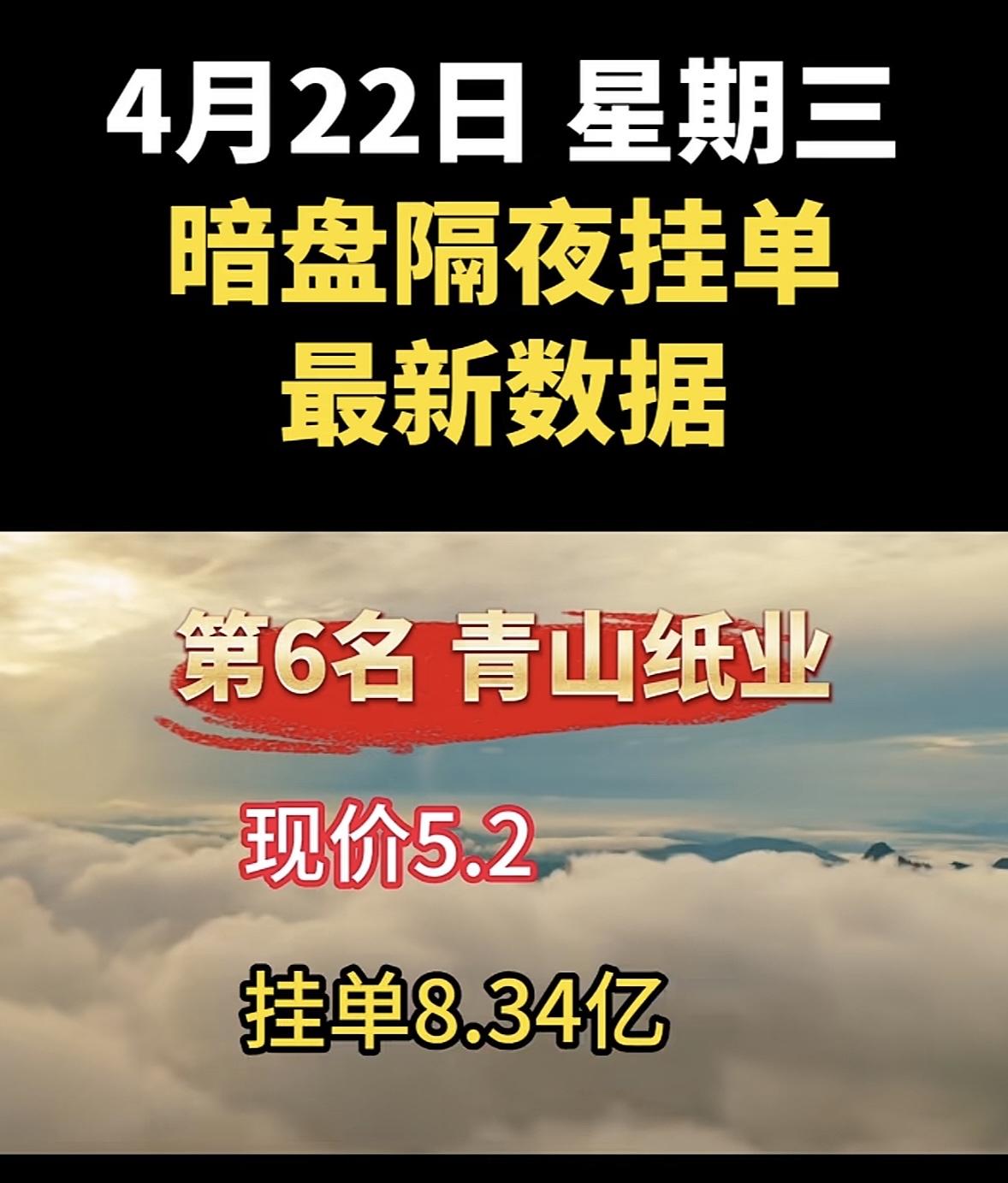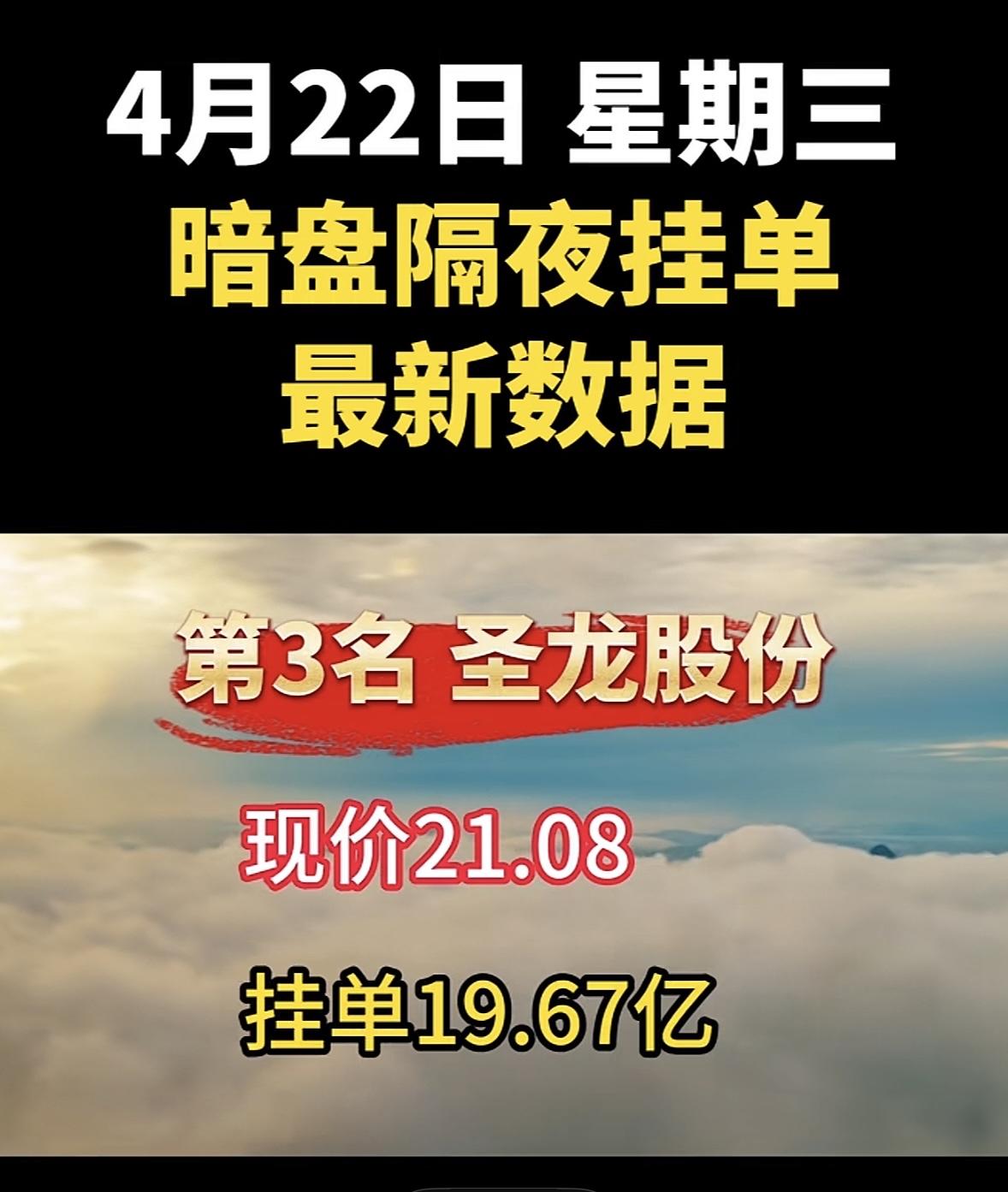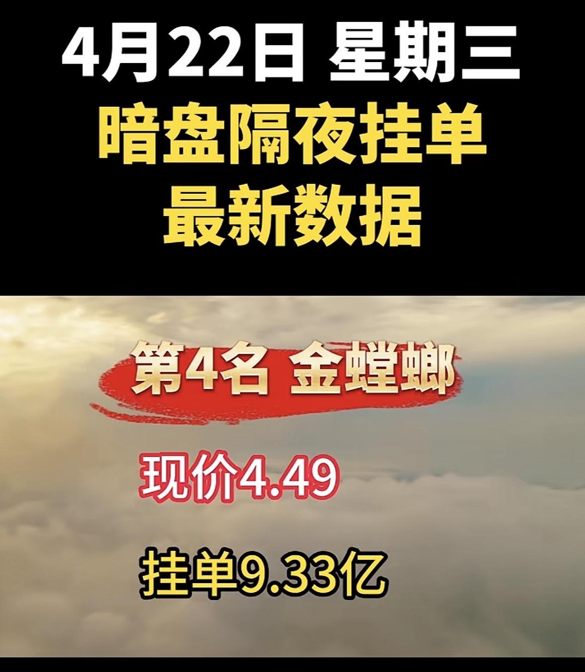 4月22日周三暗盘隔夜挂单排行榜出炉
