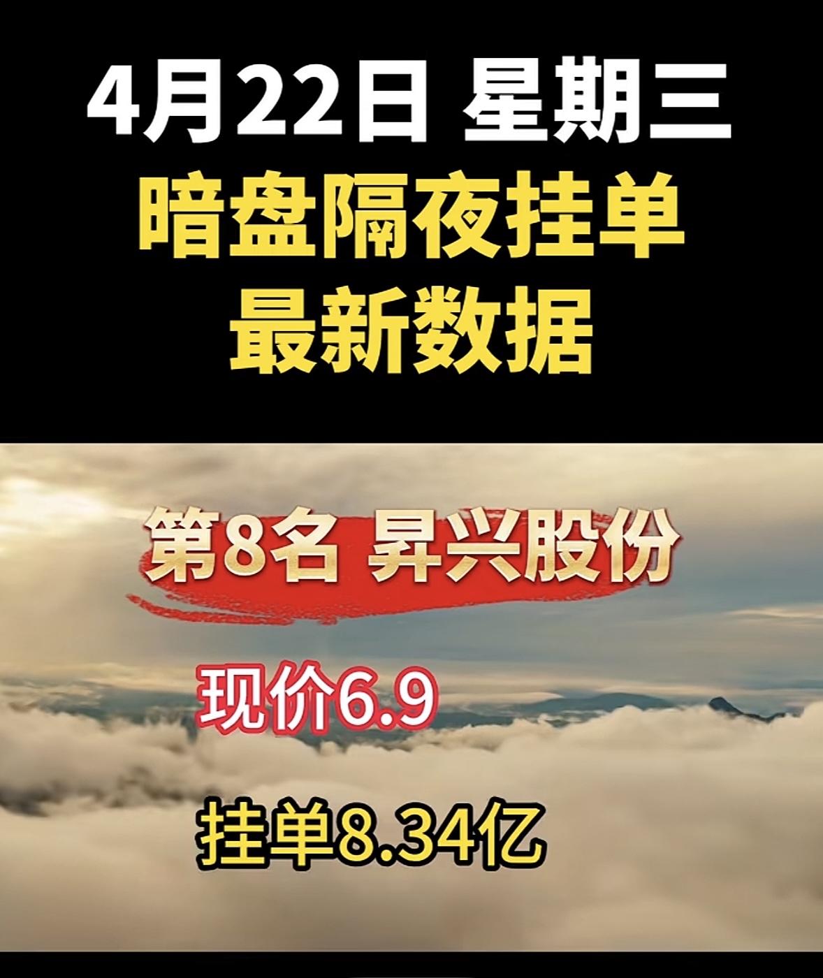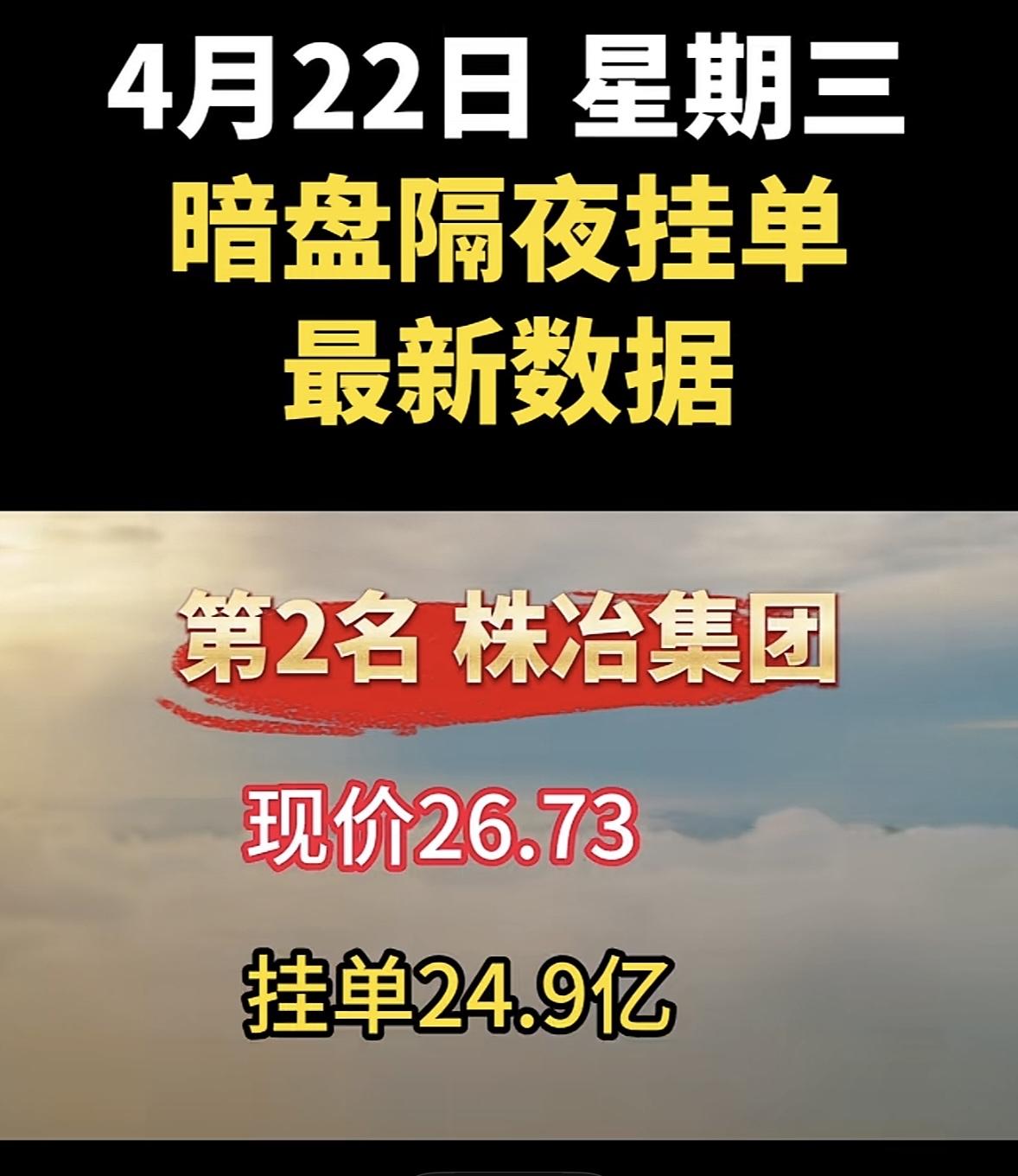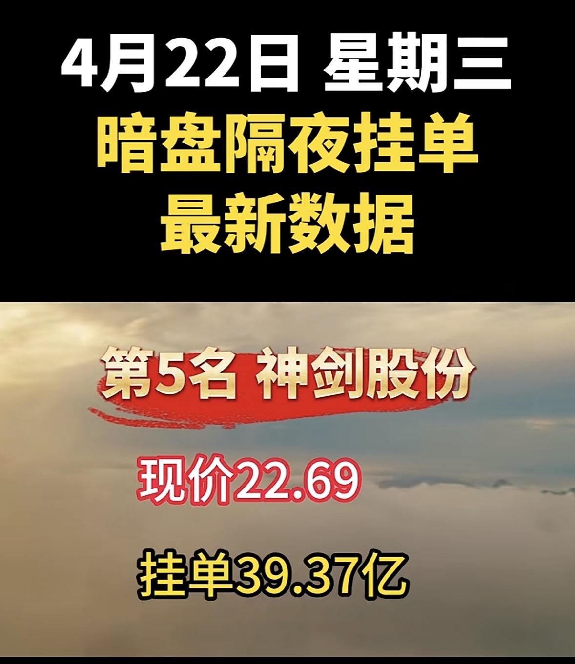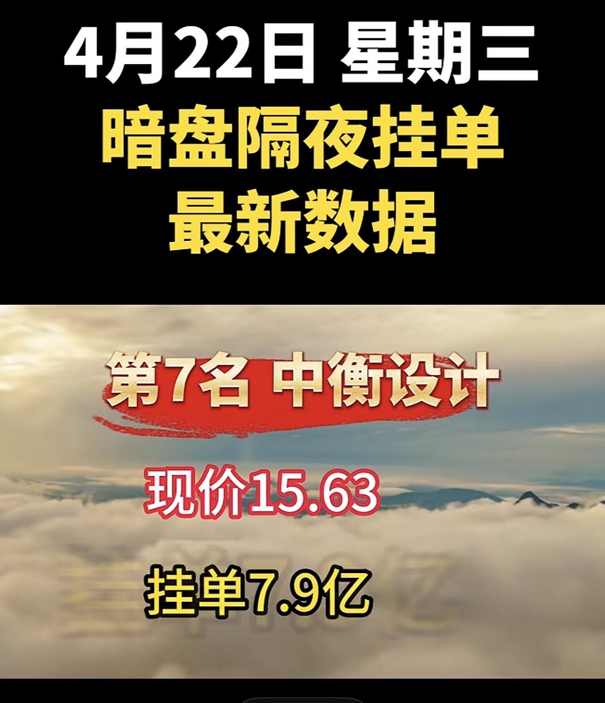 4月22日周三暗盘隔夜挂单排行榜出炉