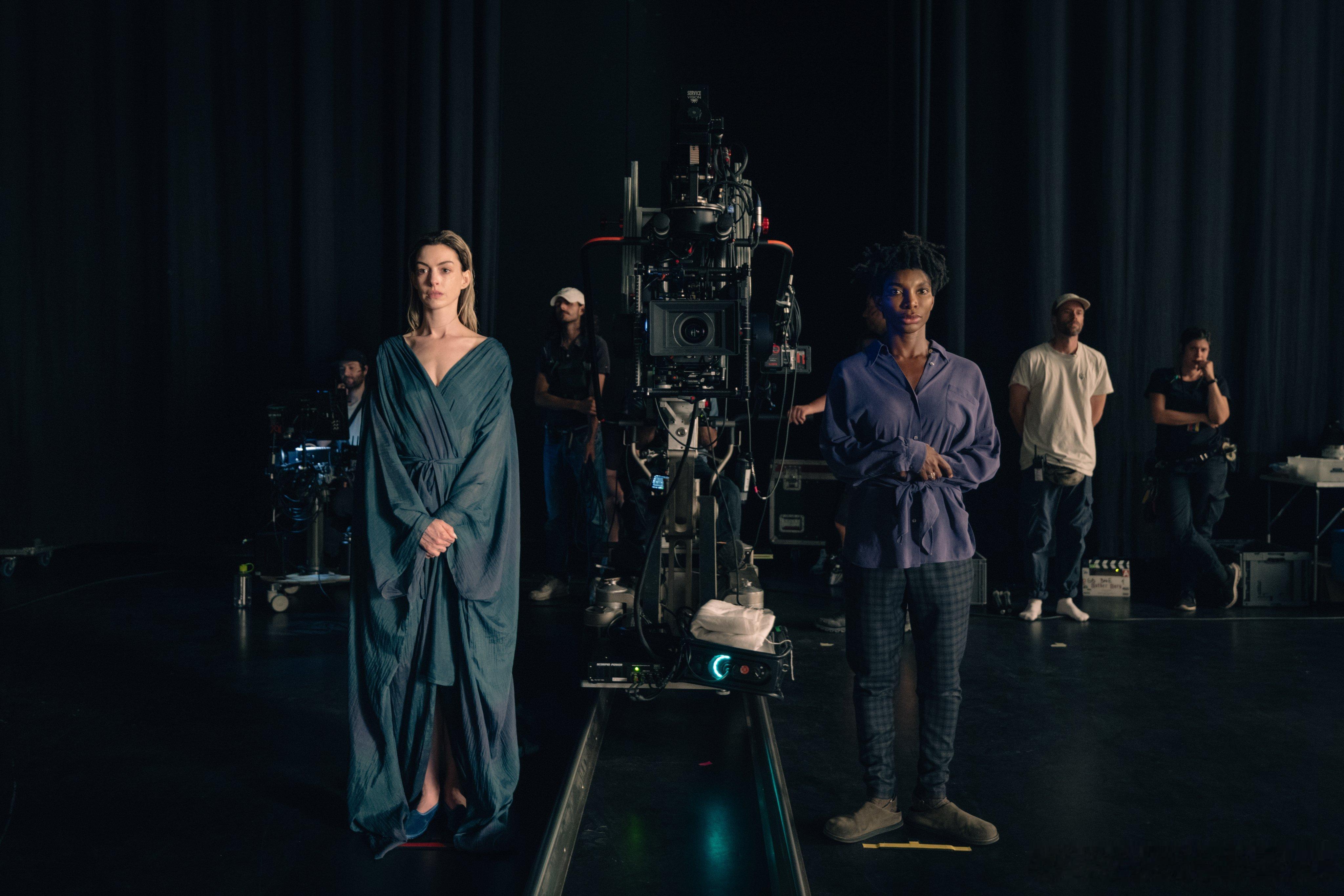 一组安妮·海瑟薇在《圣母玛利亚》的最新片场照