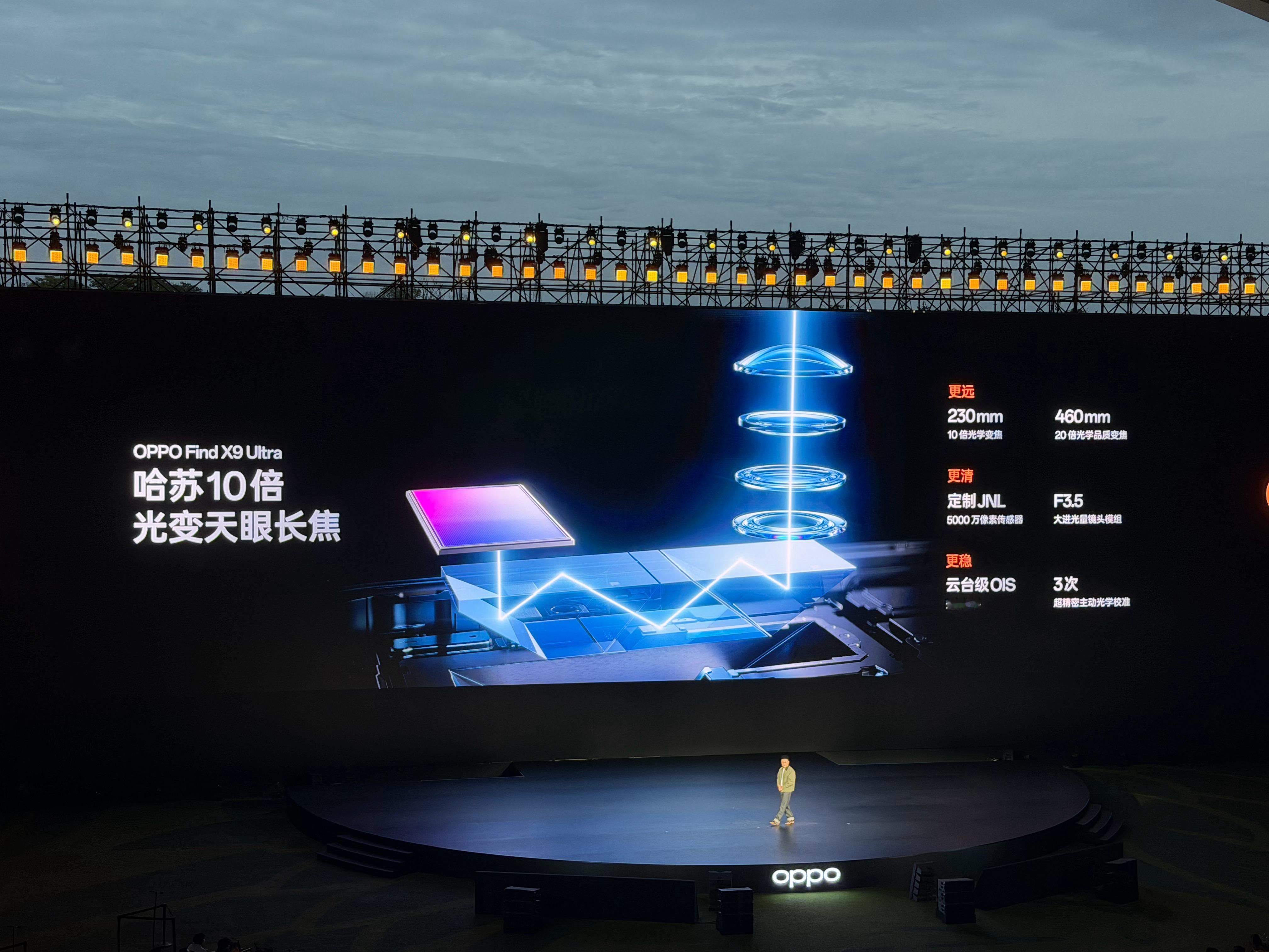 OPPO Find X9 Ultra 这次在影像方面可以说是下了血本了,带来哈苏全大底五摄光学系统!哈苏2亿超大底超清主摄、哈苏2亿超大底超清长焦、哈苏10倍光变天眼长焦,20倍光学品质变焦以及5000万像素超广角,第二代丹霞色彩还原镜头!另外,全新一代哈苏大师模式,支持6焦段直出哈苏8K超清照片,还有大师模式原生胶片,拥有原生经典、情绪与表达、结构与时间3大系列,一共9种经典胶片效果 成都·成都露天音乐公园