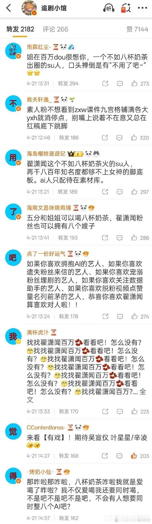 t,吴宣仪粉丝给翟潇闻排字了,还表示这家粉丝被很多剧方给避雷了,因为她们很喜欢踩剧埋剧,还对女艺人造黄💊!