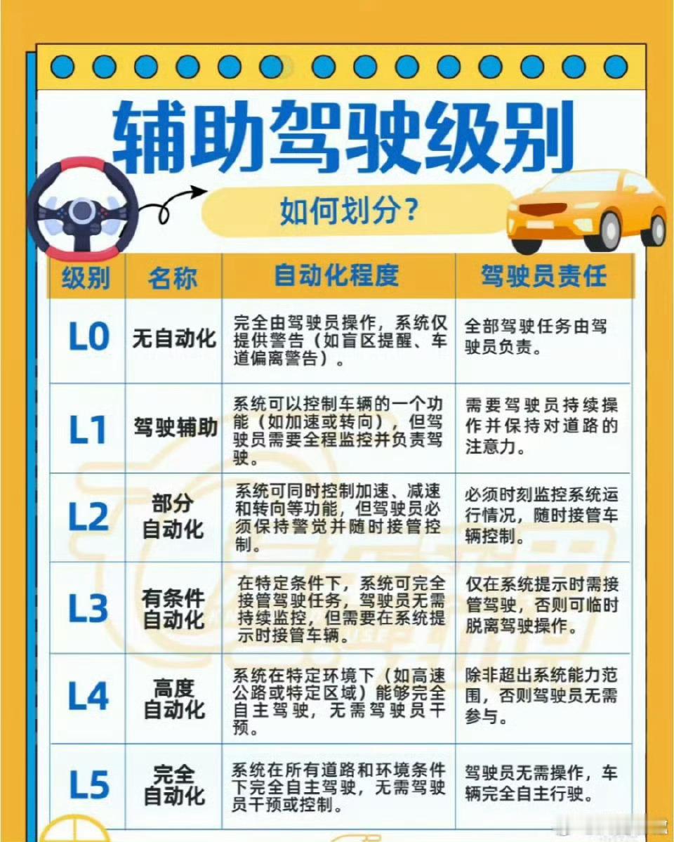 图解辅助驾驶等级的区分,激光雷达和AI智驾技术正在逐渐解放人的手脚。上汽高管称真