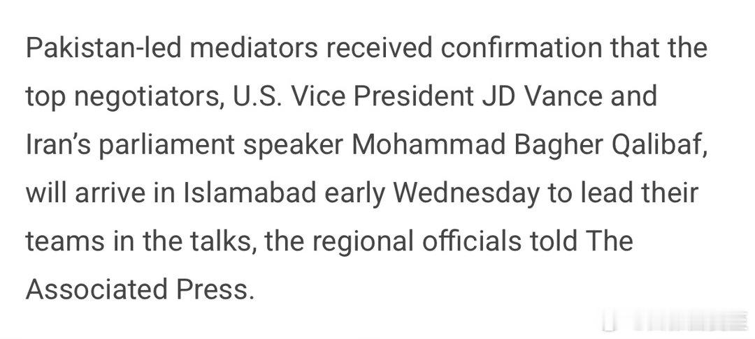 巴基斯坦收到美伊确认:会派人来谈美国副总统、伊朗议长预计周三上午抵达
