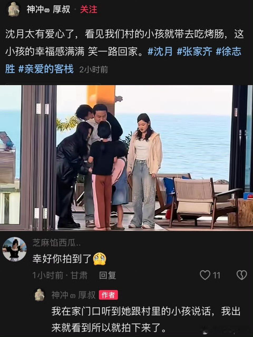 沈月喊村里小朋友去客栈吃烤肠沈月原来给村里的小朋友也有送烤肠吃,虽然不是录制嘉宾