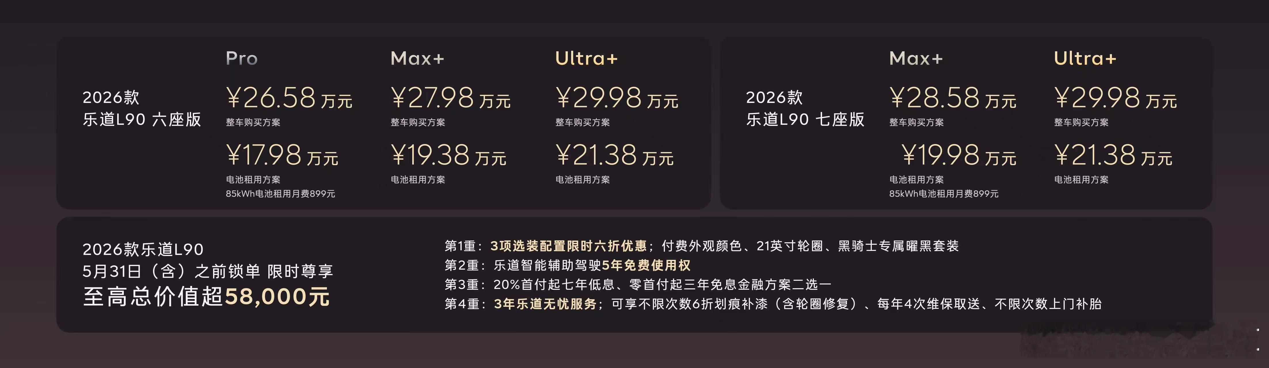 乐道L90蔚来世界模型版2026款乐道L90正式发布,看完配置,我觉得这台车更像是在重新定义家用大三排SUV的合理标准。