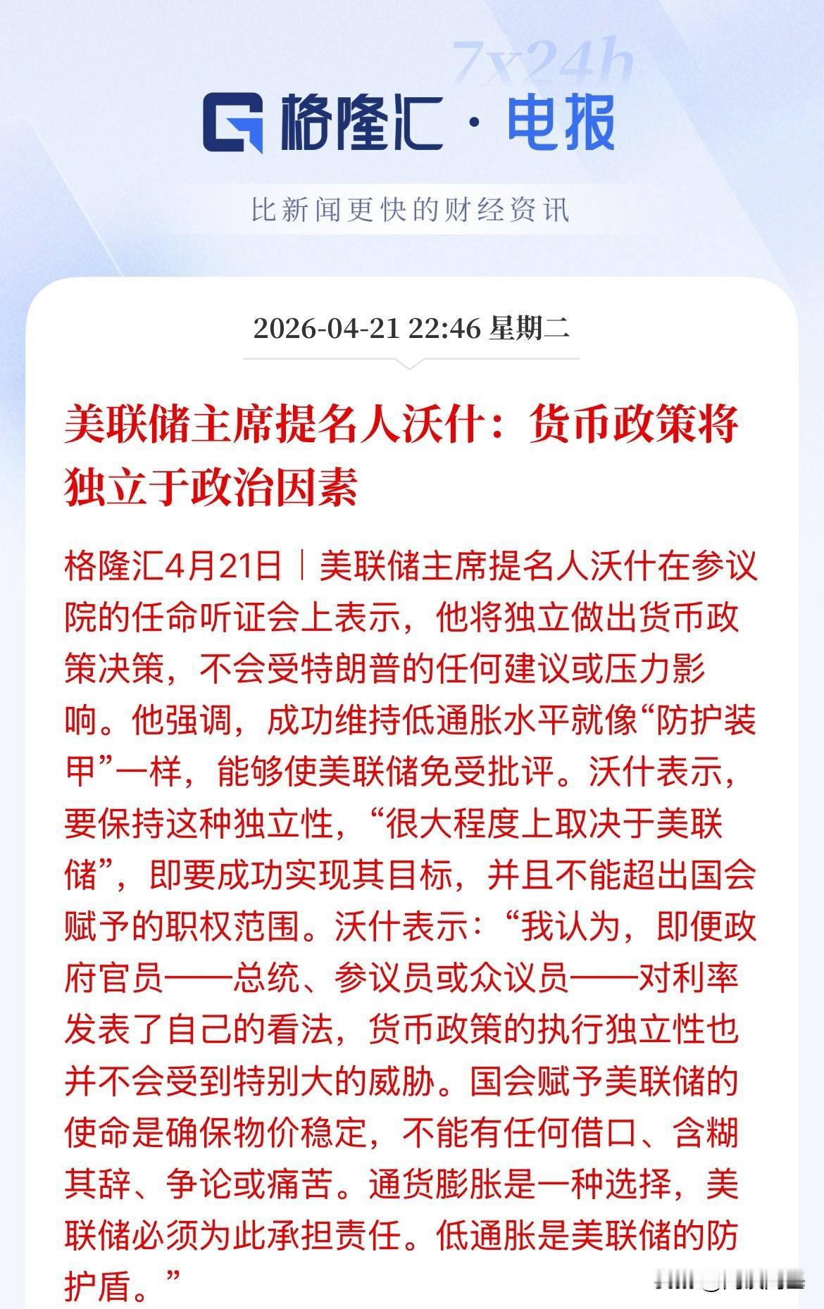 不及预期!市场押注沃什上台后的鸽派预期遭遇重挫,沃什:保持美联储独立性,货币政策将独立于政治因素,不知道特朗普选他是为了什么