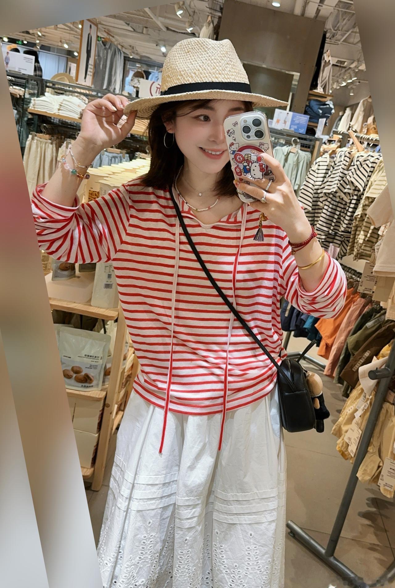 红条纹这件真的很有气血感[憨笑]