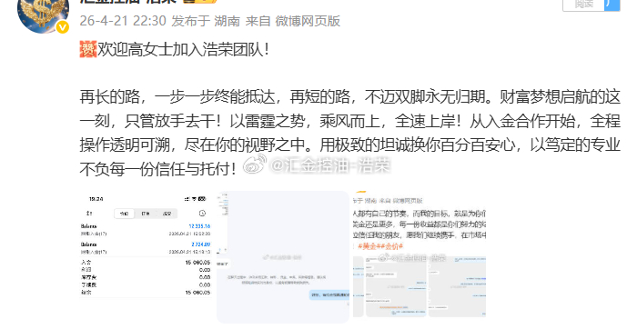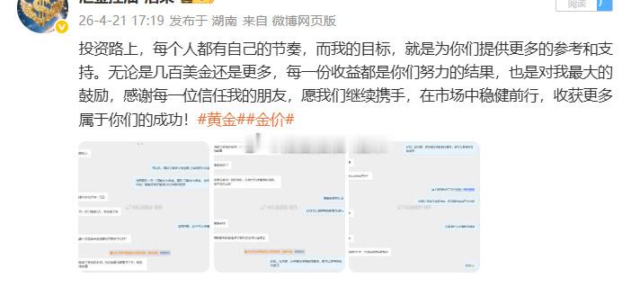 今天新加入的高女士2胜1负,共收割八千美金!交易场上能真正走得远、有所收获的人,都懂得在失误中复盘总结,在趋势里坚守目标。既相信自己的判断,又不固执己见;既敬畏市场,又不失底气。唯有如此,才能在日复一日的行情波动中,走出属于自己的稳健之路。黄金金价