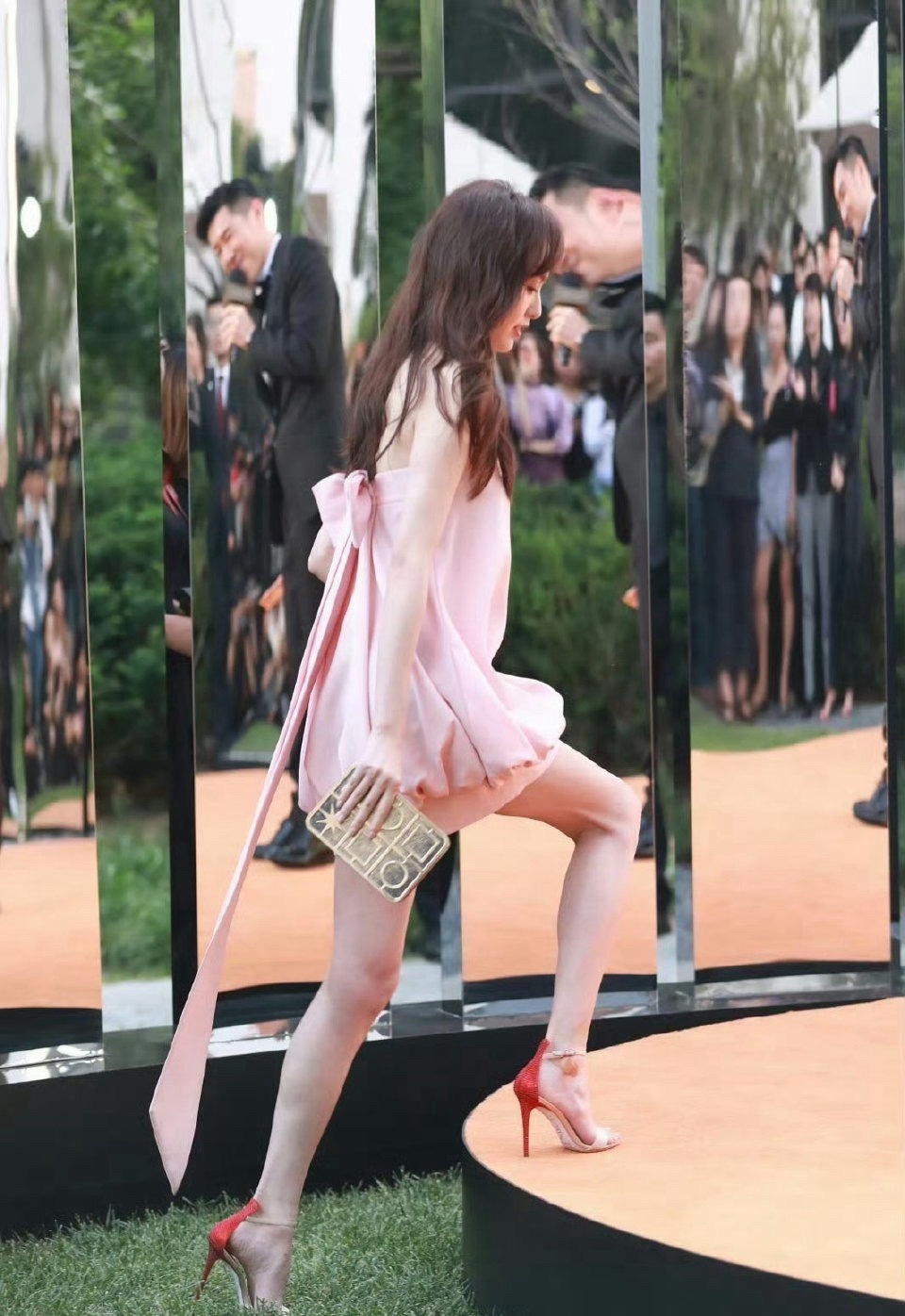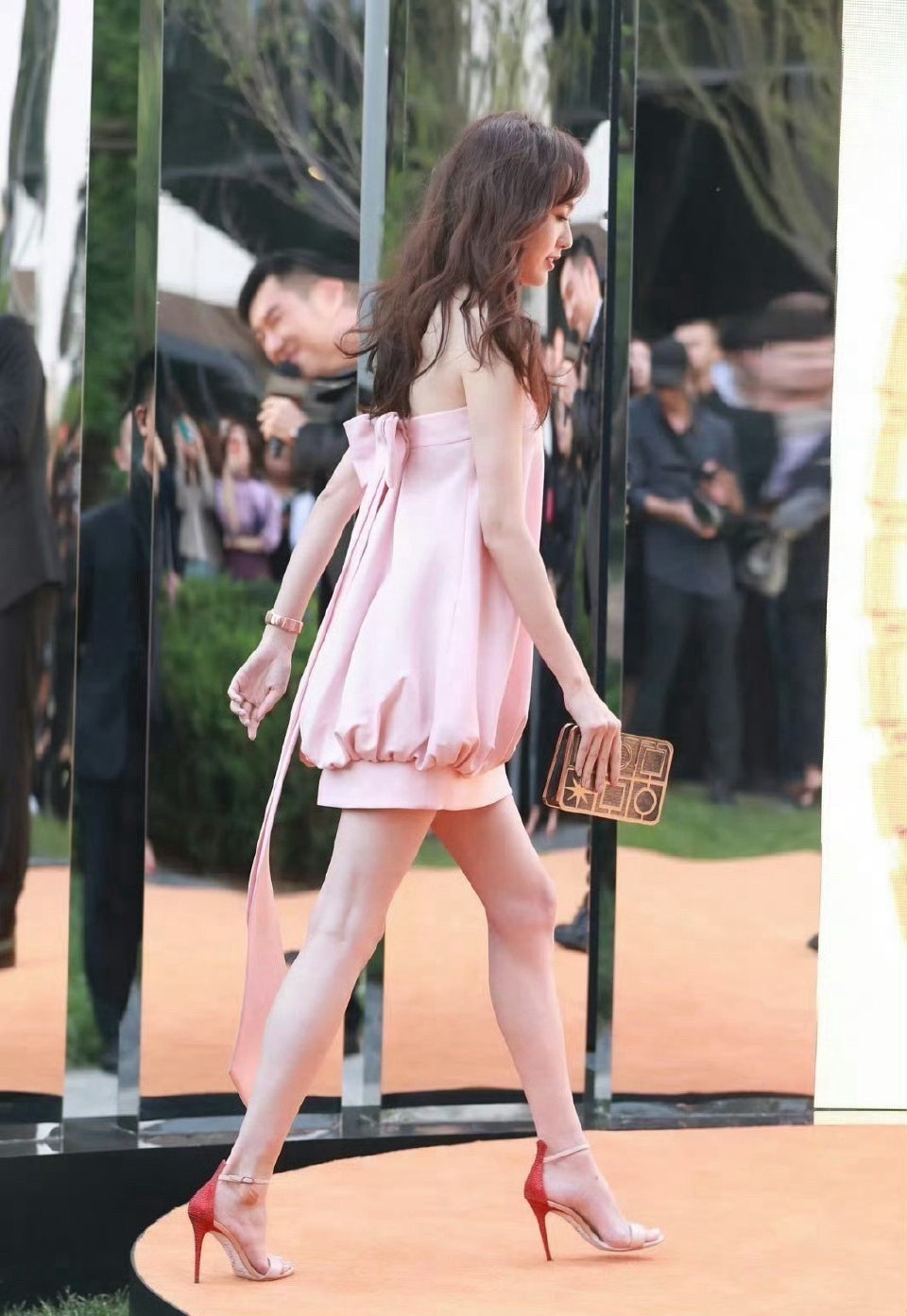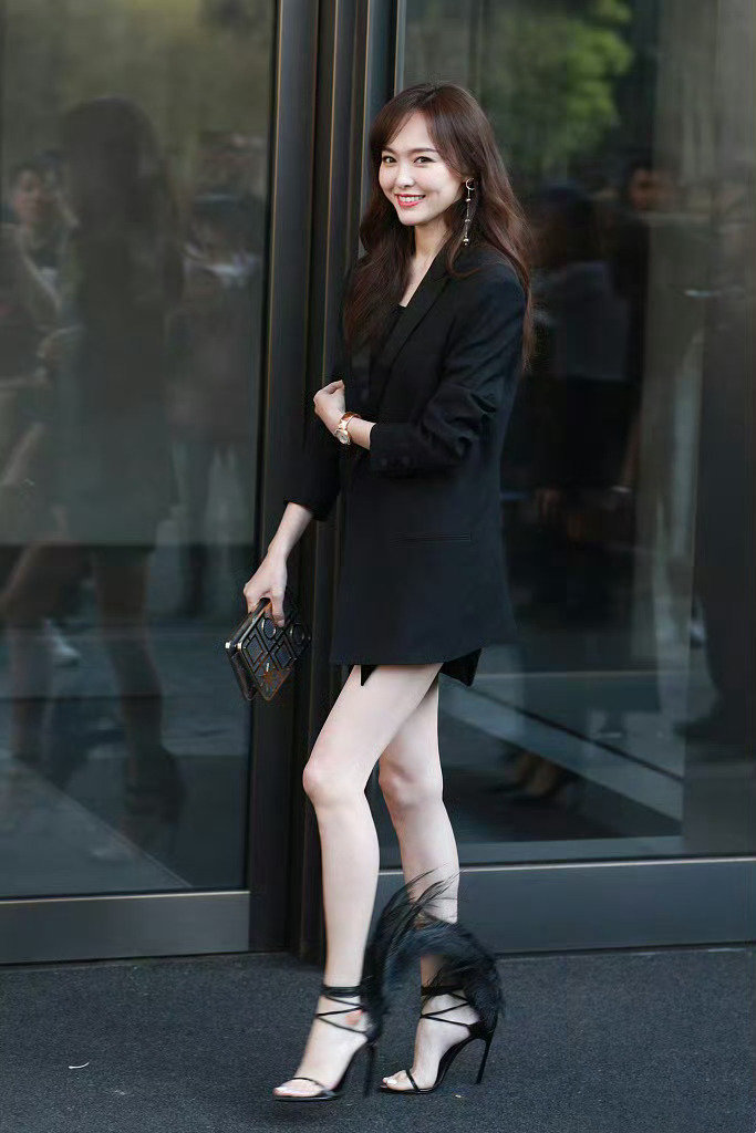 今天唐嫣在录制新剧的时候搭配的很有潇洒干练之美,看上去确实是很有职业丽人范儿。