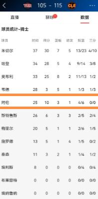 NBA季后赛首轮G2,骑士主场115-105再胜猛龙,系列赛2-0领先,米切尔30分、哈登28分、莫布里25分,三大球星状态火热,而中锋阿伦全场10分3篮板3盖帽,出场25分钟,正负值+18全队最高。