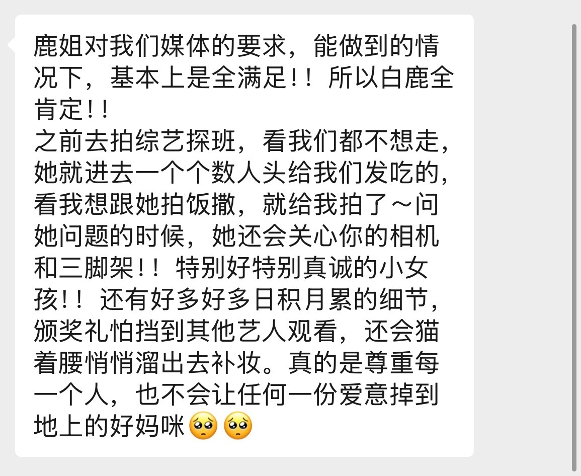 业内评价白鹿太好了