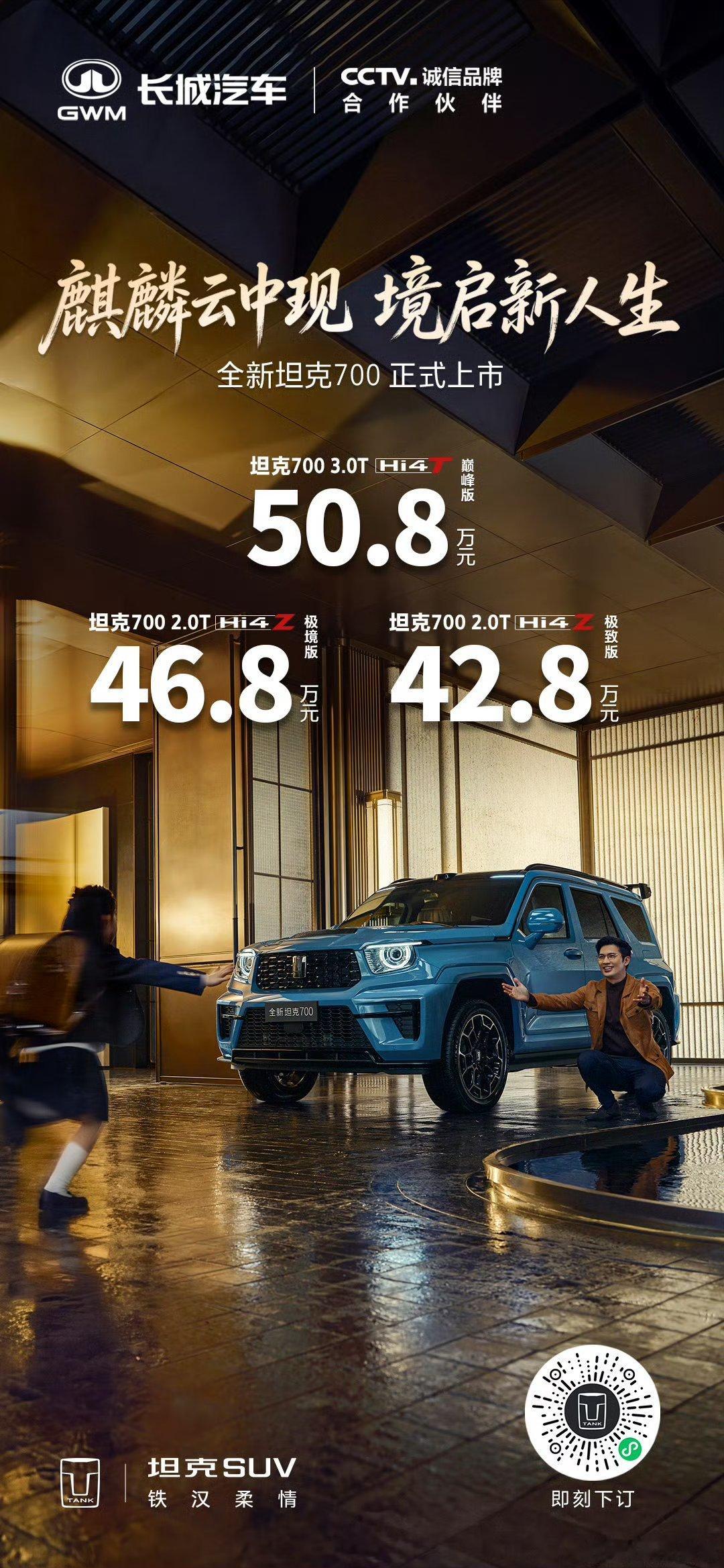 全新坦克700上市42.8万元起硬派越野该有的三把锁、涉水深度全拉满,城市通勤的