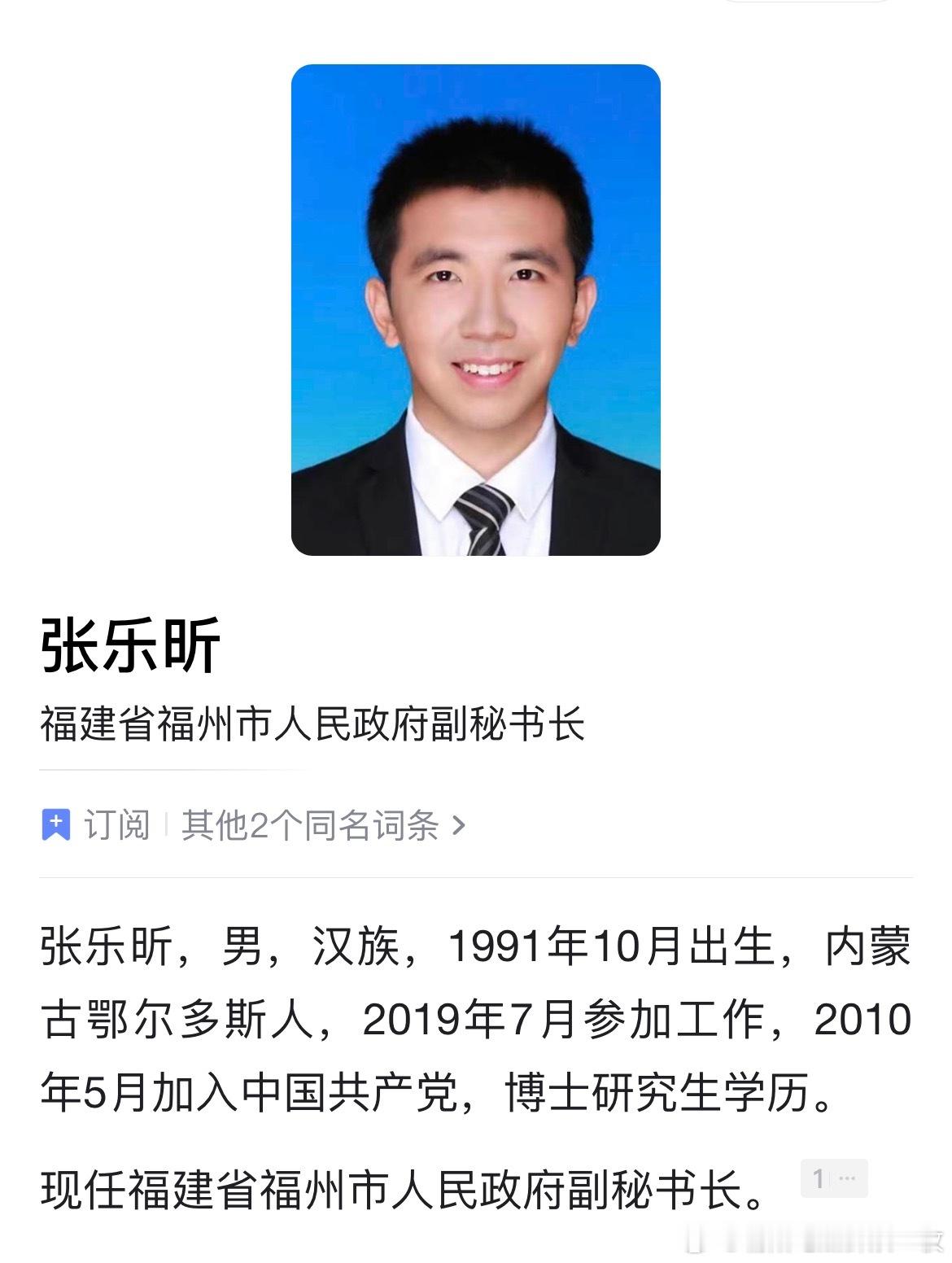 张乐昕已任福州市人民政府副秘书长。