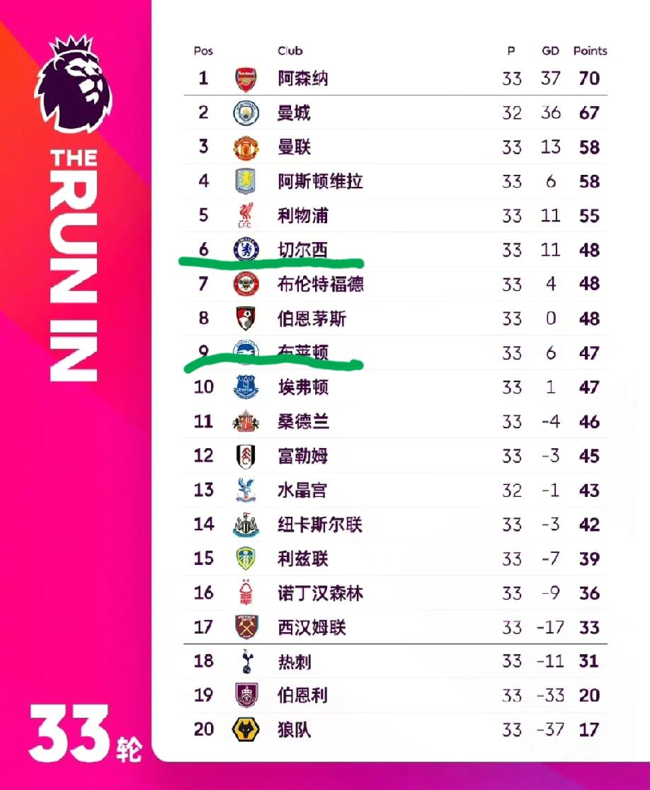 切尔西这次真的是废了,0:3输给布莱顿后,已经联赛五连败了。布莱顿也凭借此役,成功将蓝军挤出了欧联区。这样的话,后面的布伦特福德、伯恩茅斯、埃弗顿都真的有机会了!
